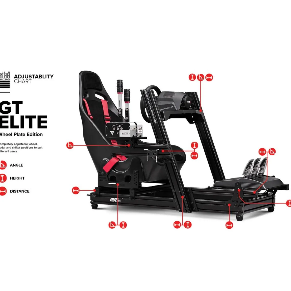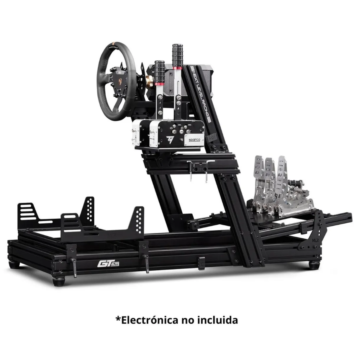 Next Level Racing – Cockpit GTElite Racing Simulator Wheel Plate Edition. Estamos ante lo nuevo de Next Level Racing, el Cockpit GT Elite Wheel Plate, la gama más profesional. Diseñado para conseguir una máxima rigidez y estabilidad, haciendo de él uno de los mejores Cockpits de aluminio de gama media del mercado. Gracias a ello, comparado con otros Cockpit de gama media, el GT Elite Wheel Plate es más sólido, más fácil de montar y con un acabado de gran calidad.