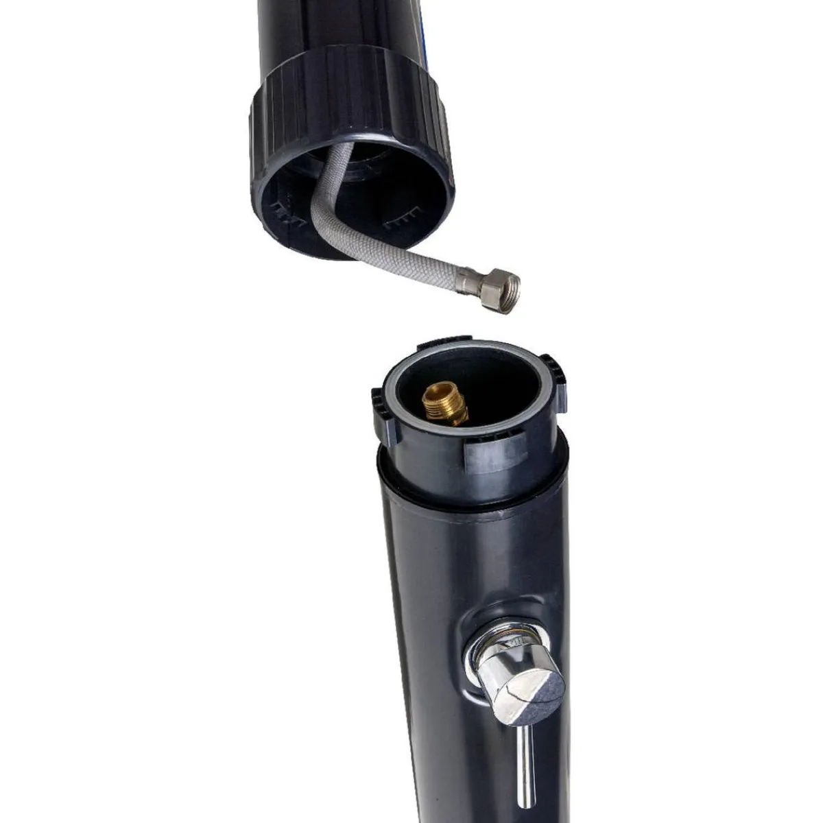 Esta ducha solar es ideal para instalar en el jardín o cerca de la piscina y disfrutar de agua caliente de forma rápida.