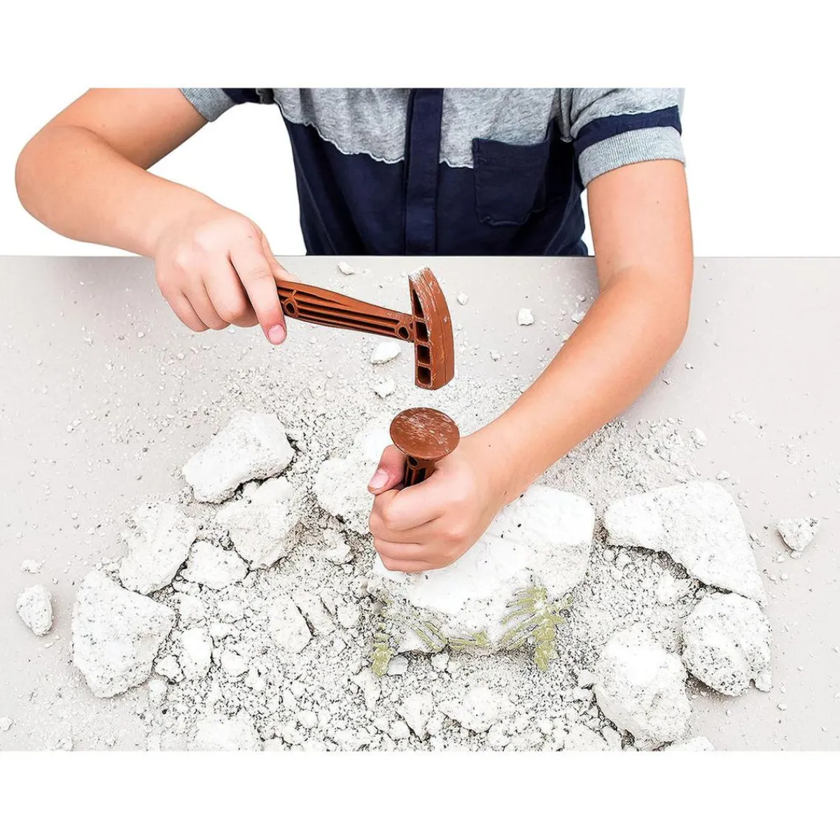 Con este atractivo juego, los niños pueden experimentar la emoción de excavar en el bloque proporcionado y descubrir los restos de un Smilodon, uno de los animales más temidos de la prehistoria. El juego incluye un martillo y un cincel, herramientas ideales para convertir a tu niño en un auténtico paleontólogo. Lo más emocionante de todo es que el esqueleto resultante ¡brilla en la oscuridad!