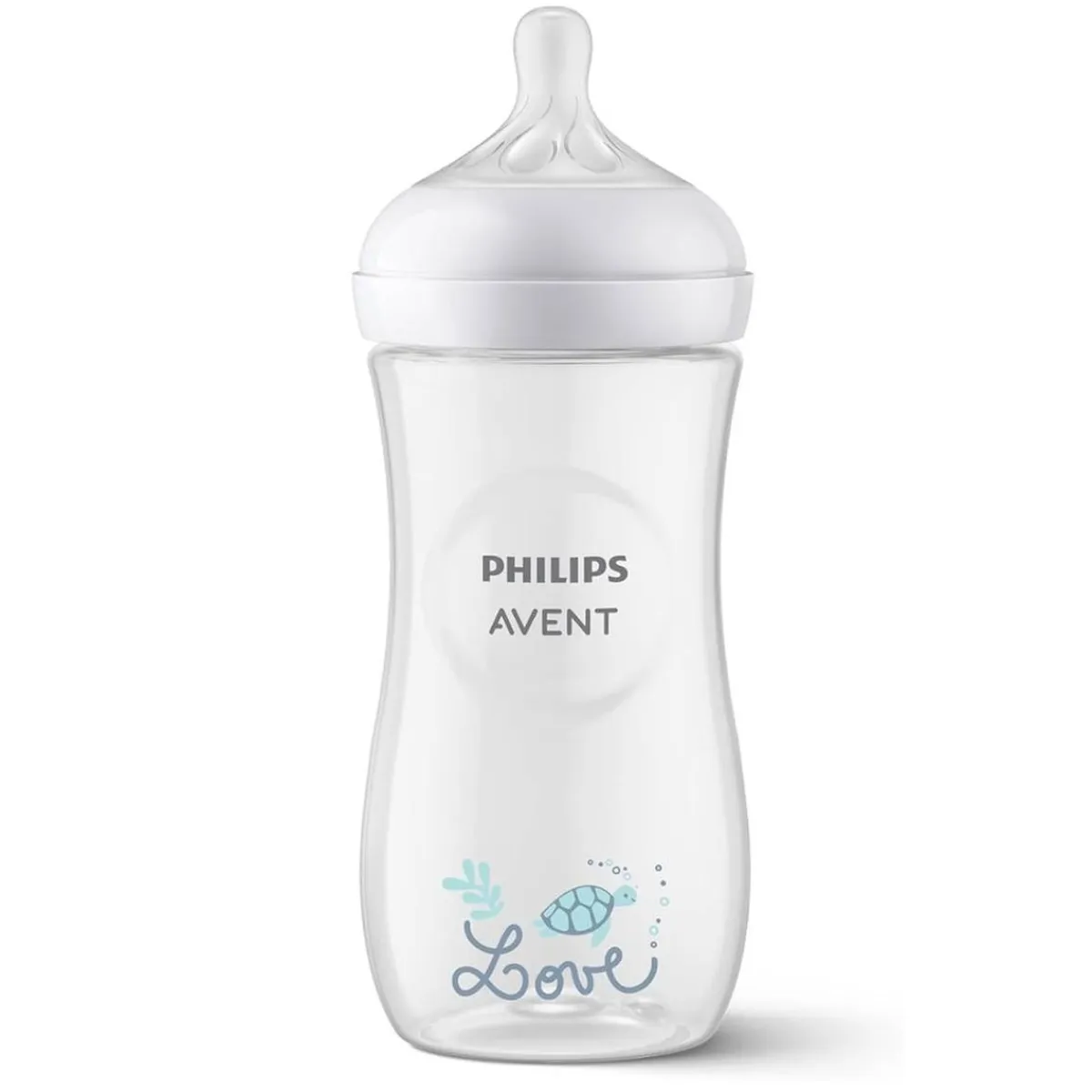 Philips Avent – Biberón Natural Response 330 ml Tortuga, diseñado para ofrecer una experiencia de alimentación que imita la lactancia materna, facilitando la transición entre el pecho y el biberón.
