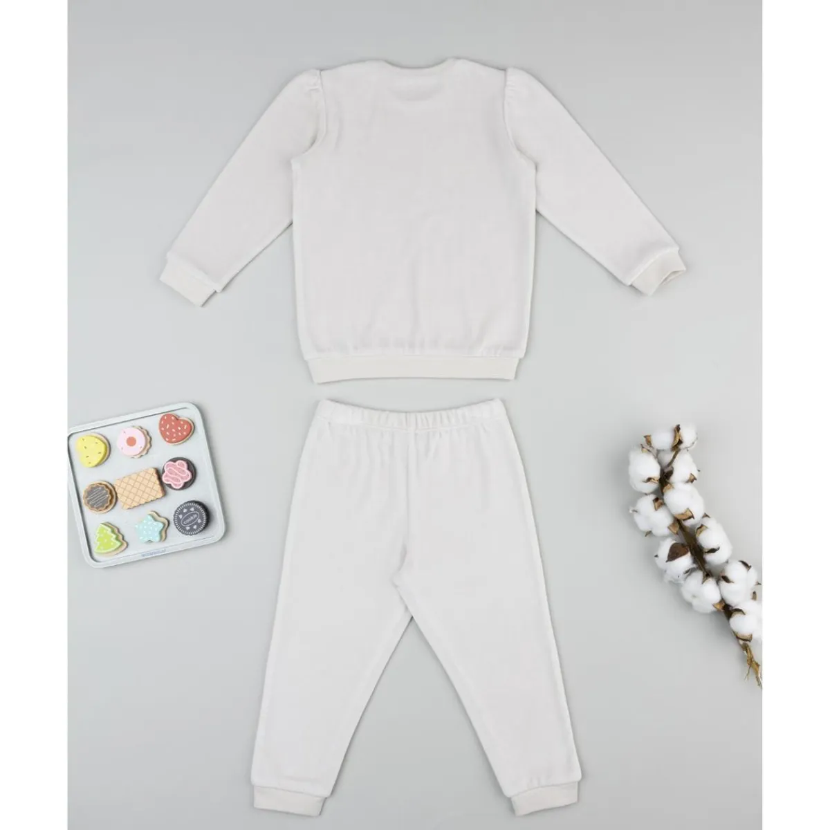 Un conjunto versátil y acogedor, perfecto para los momentos de descanso de la niña.