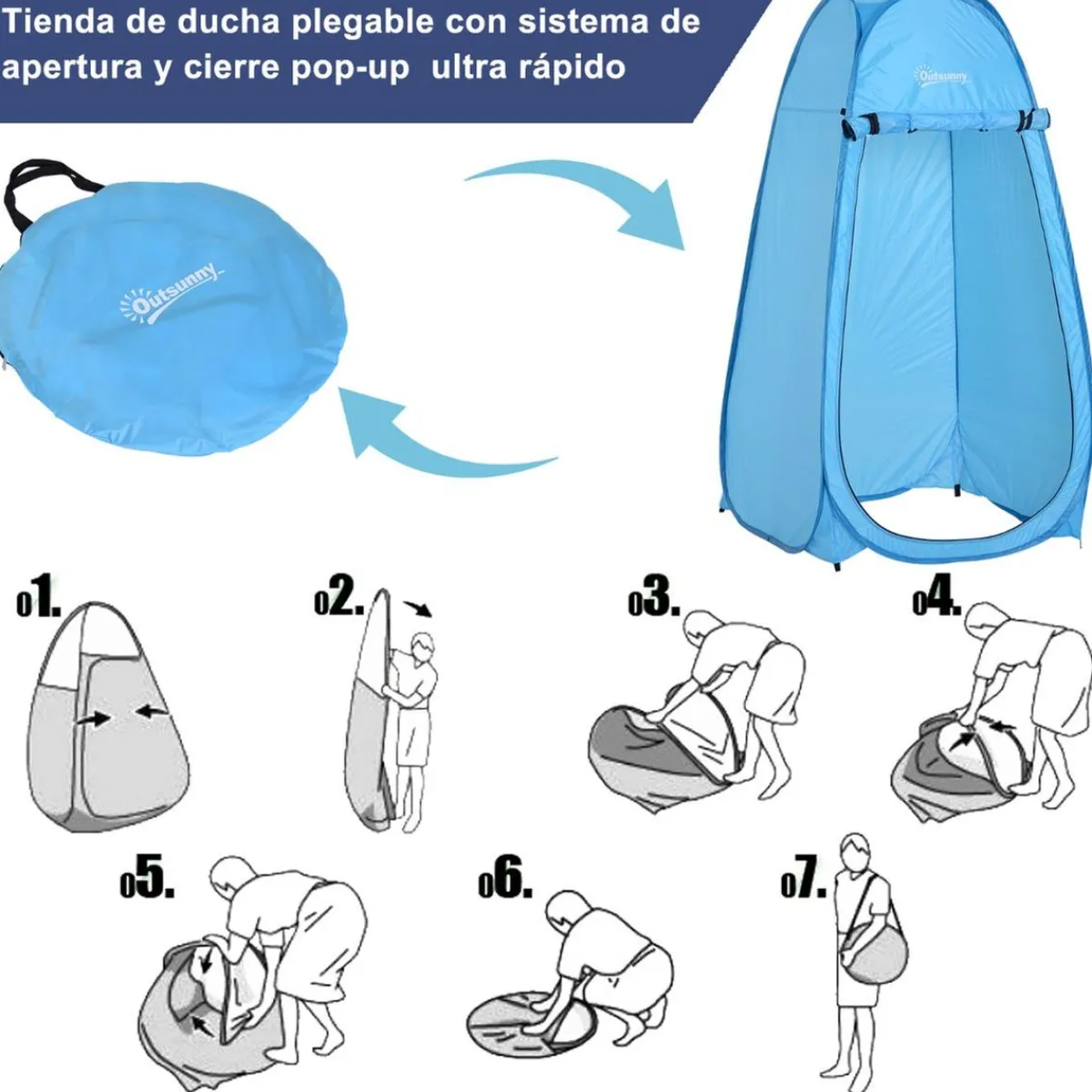 Outsunny – Tienda camping Pop Up Azul, una tienda ideal para usar como tienda de ducha, como cuarto de baño o como cambiador. Resistente al agua y protección UV para garantizar una buena resistencia a la intemperie.