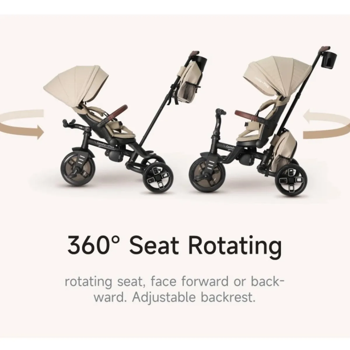 Un triciclo evolutivo diseñado para crecer con el niño: desde paseo dirigido por mamá o papá hasta tracción independiente, con 6 modos diferentes.