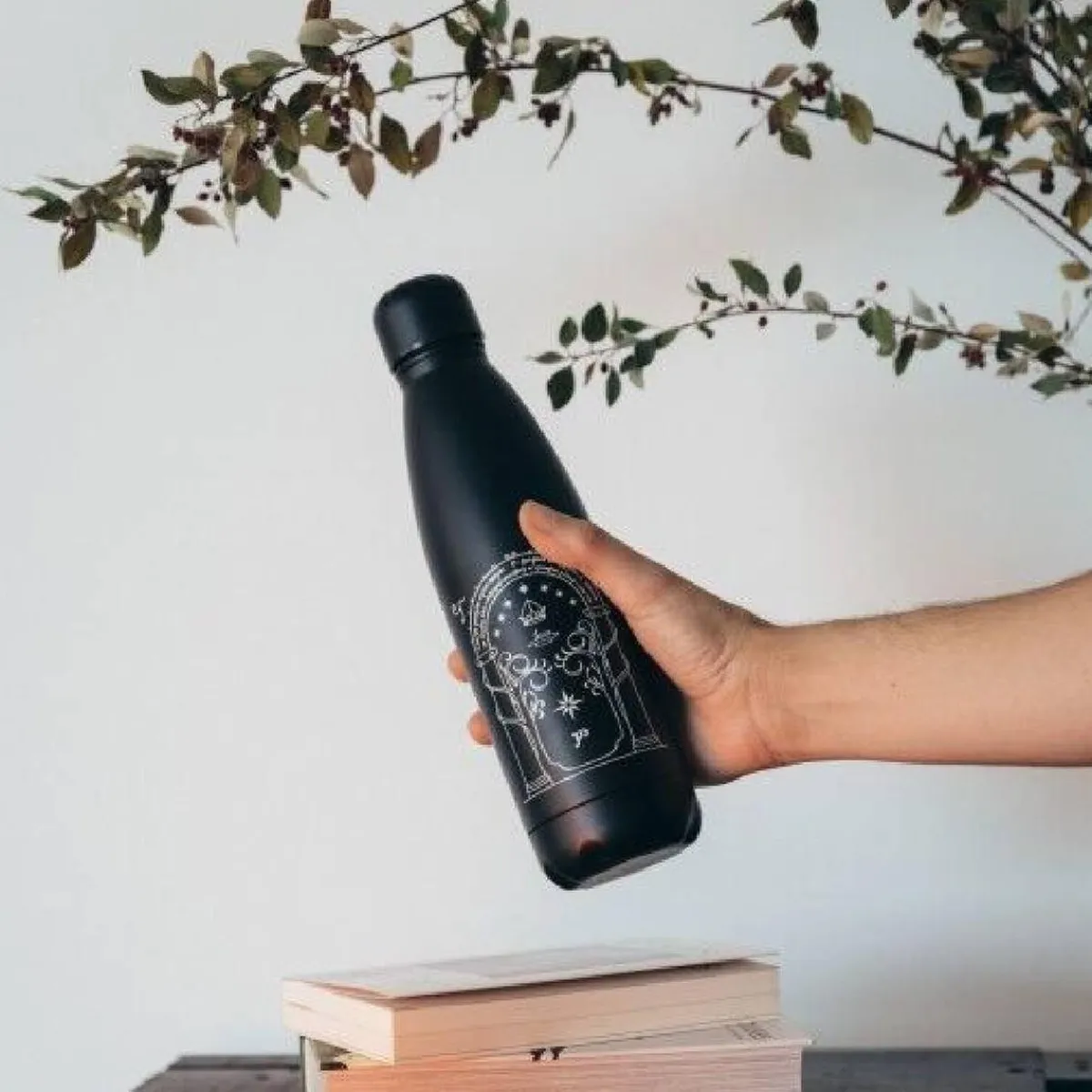 El Seños de los Anillos – Botella Puerta de Moria, una botella metálica de 750 ml atractiva y funcional para usar en la oficina, gimnasio o actividades al aire libre.
