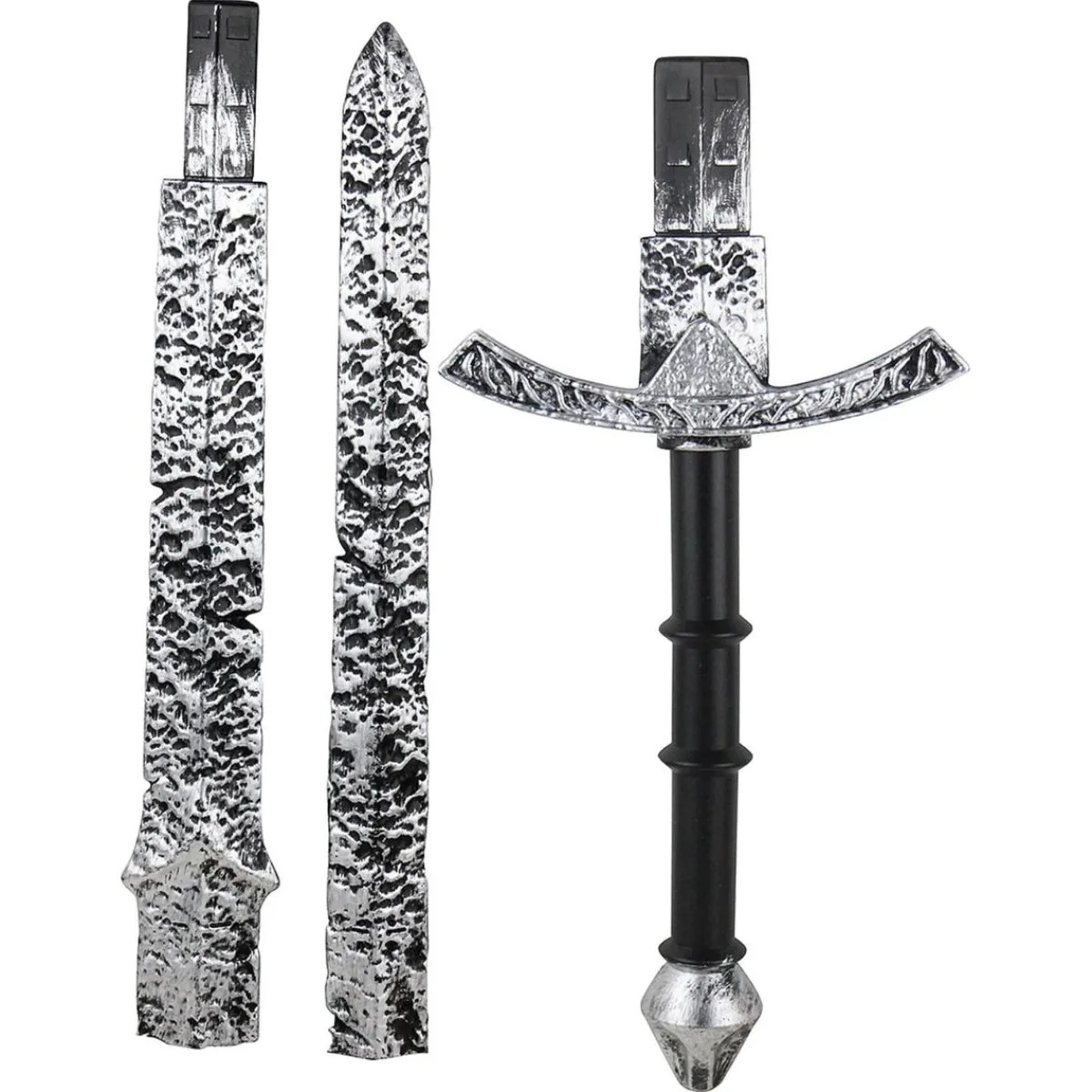 Completa tu atuendo oscuro con esta espada desmontable de 120 cm, formada por tres piezas de 40 cm que se ensamblan con firmeza para lograr presencia escénica sin complicaciones de transporte. Fabricada en materiales ligeros de uso lúdico, es ideal para cosplay, teatro o desfiles donde se busque un efecto impactante manteniendo la seguridad. El acabado texturizado aporta realismo, mientras que el peso equilibrado facilita blandirla en coreografías. Montaje rápido, desmontaje sencillo para guardar en mochilas. Recomendaciones: uso bajo supervisión en actividades infantiles, no golpear personas ni animales. Limpieza: pasar un paño húmedo y secar al aire. Un accesorio imprescindible para reinos de sombras y héroes caídos.