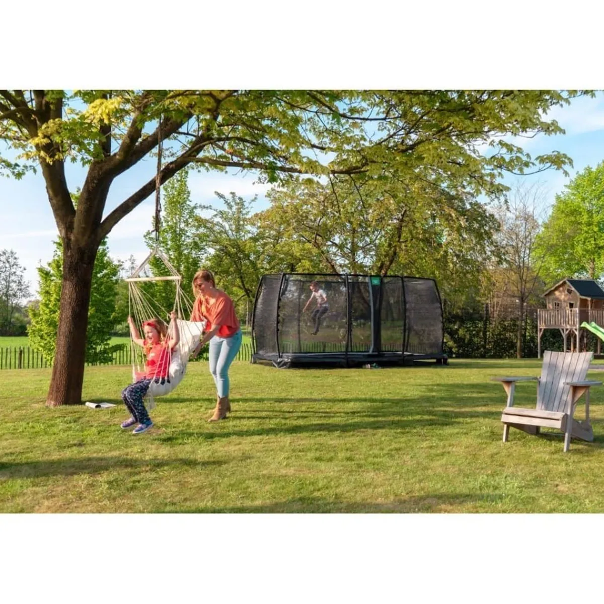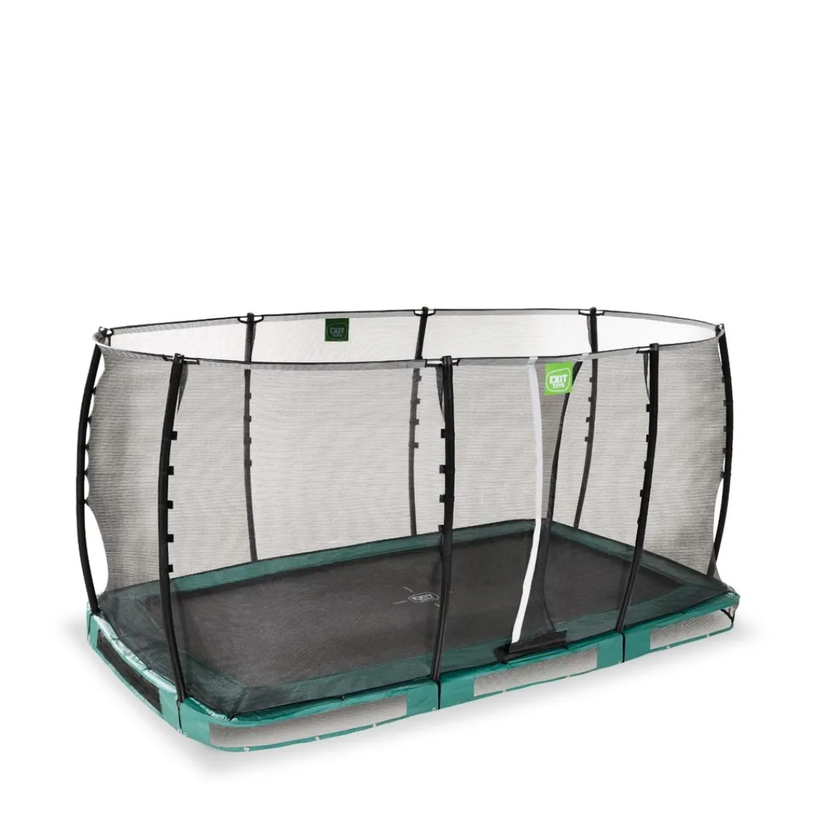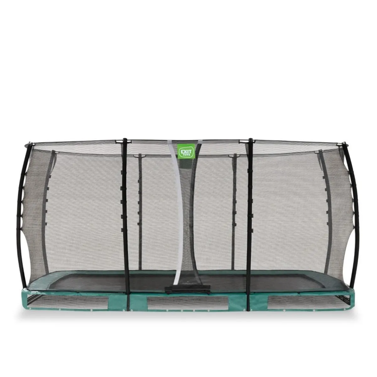 Exit – Cama elástica de suelo Allure Classic 244 x 427 cm verde, un trampolín para ser semienterrado con borde protector acolchado y red de seguridad.