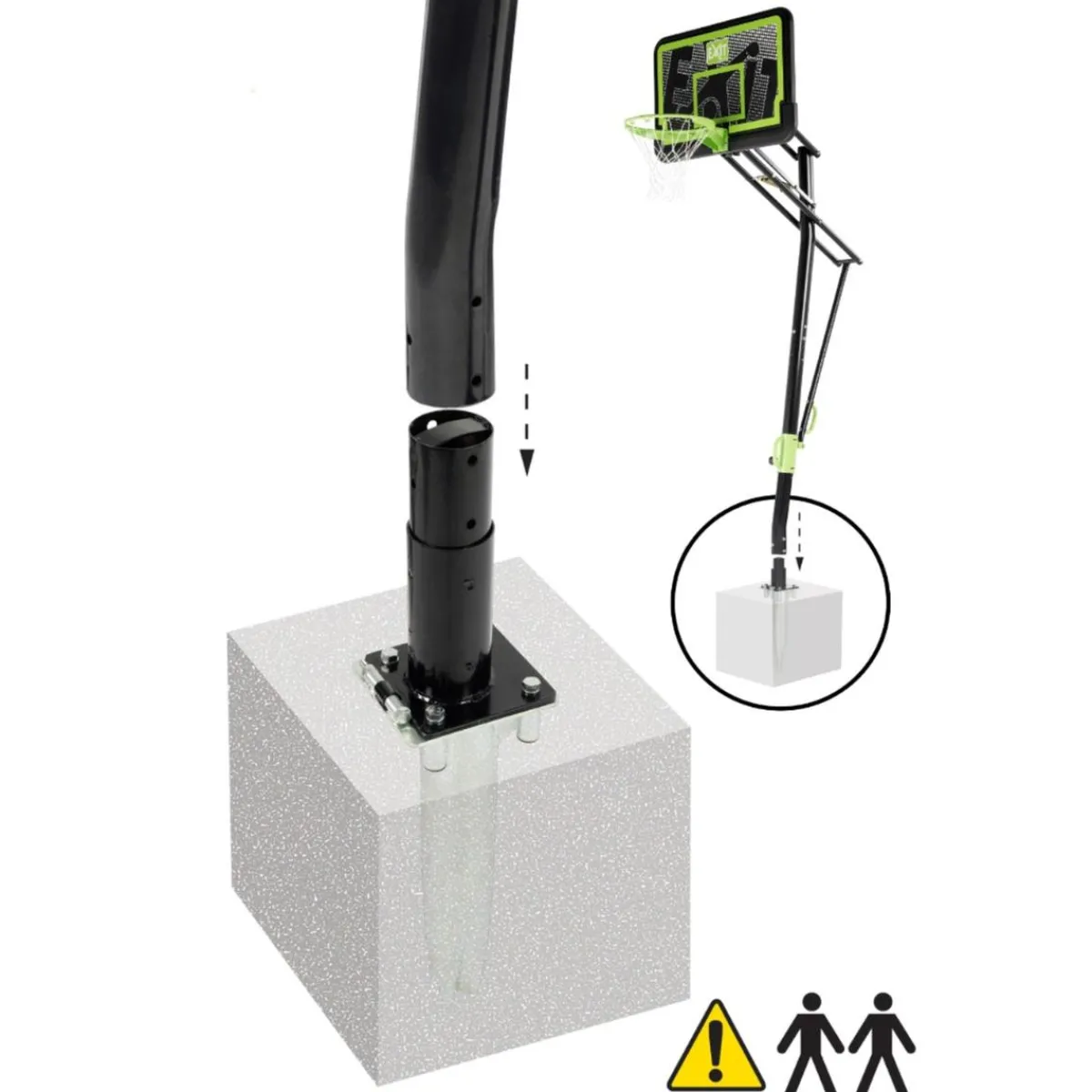 Se ancla al suelo de forma fija con un bloque de cemento, por lo que no se puede mover el tablero de baloncesto después del montaje.