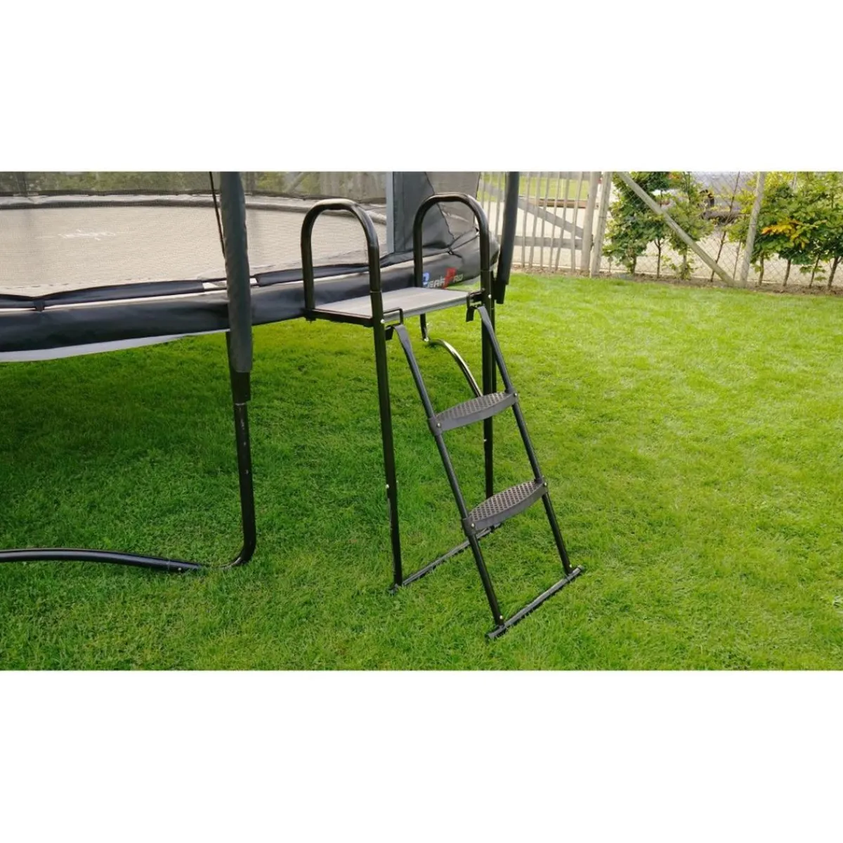 La plataforma de trampolín es un accesorio adicional para ayudarte a subir a un trampolín con escalera de manera segura y sin esfuerzo.