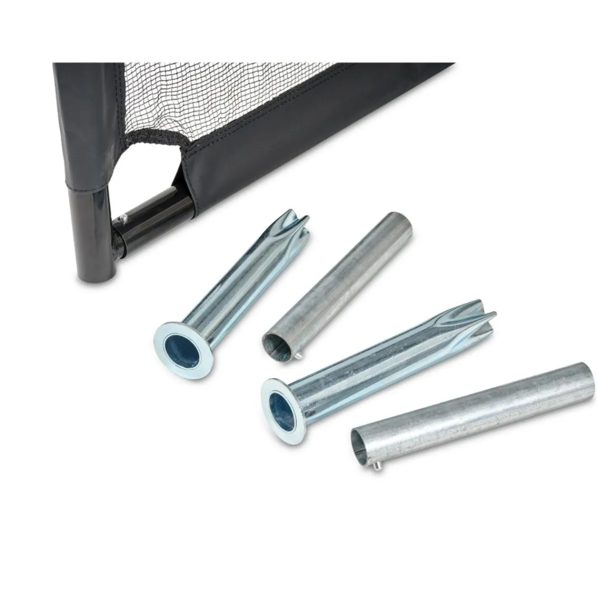 Viene con un juego de anclajes para tierra o cesped, consistente en anclajes para el suelo y tubos de anclaje. Gracias a estos anclajes la portería permanece estable durante el partido de fútbol, pero también se puede quitar fácilmente para cortar el césped. Cuando quieras volver a jugar al fútbol la portería se monta facilmente en un abrir y cerrar de ojos de nuevo en el lugar correcto.