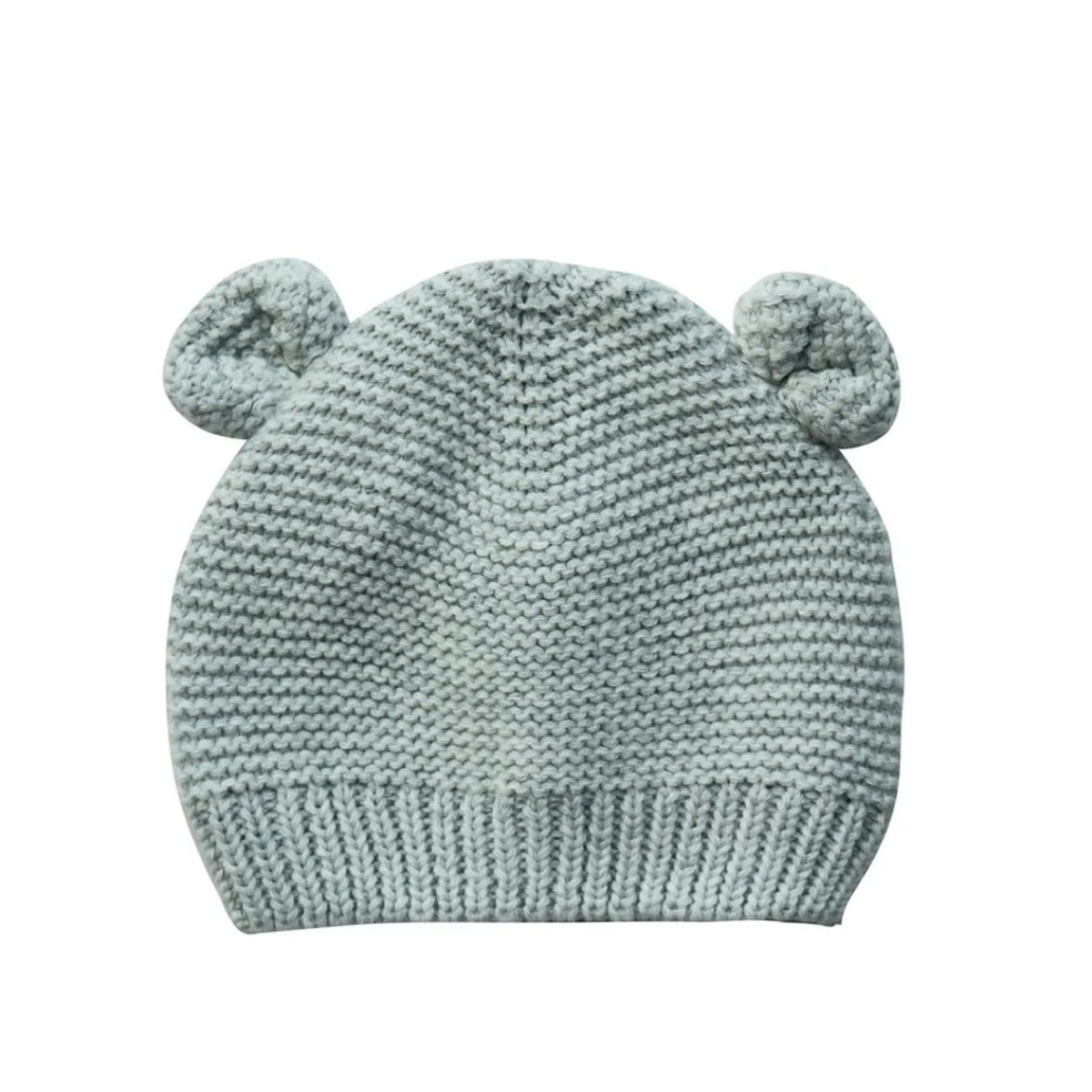 Suave gorro de tejido de punto gris con simpáticas orejas ton sur ton aplicadas.