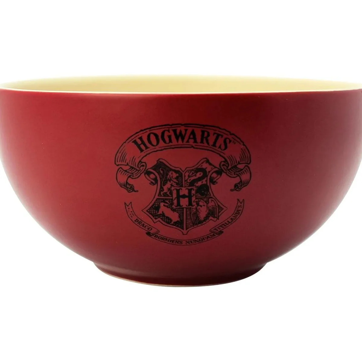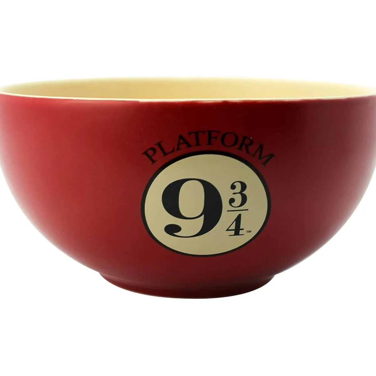 El diseño de este bol es simplemente espectacular. Presentado en un elegante color granate, cuenta con el icónico logotipo del andén 9 3/4, el lugar donde los alumnos de Hogwarts cogen el tren para iniciar sus clases. Además, en el otro lado del bol, luce con todo detalle el famoso escudo del Colegio de Magia y Hechicería de Hogwarts.