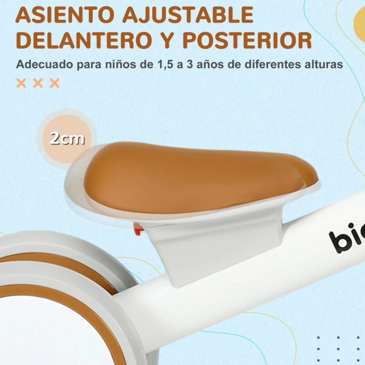 Homcom – Bicicleta sin pedales Blanco, una bici sin pedales que ofrece a los más pequeños una forma entretenida de aprender a equilibrarse y moverse, fomentando la actividad física desde temprana edad.