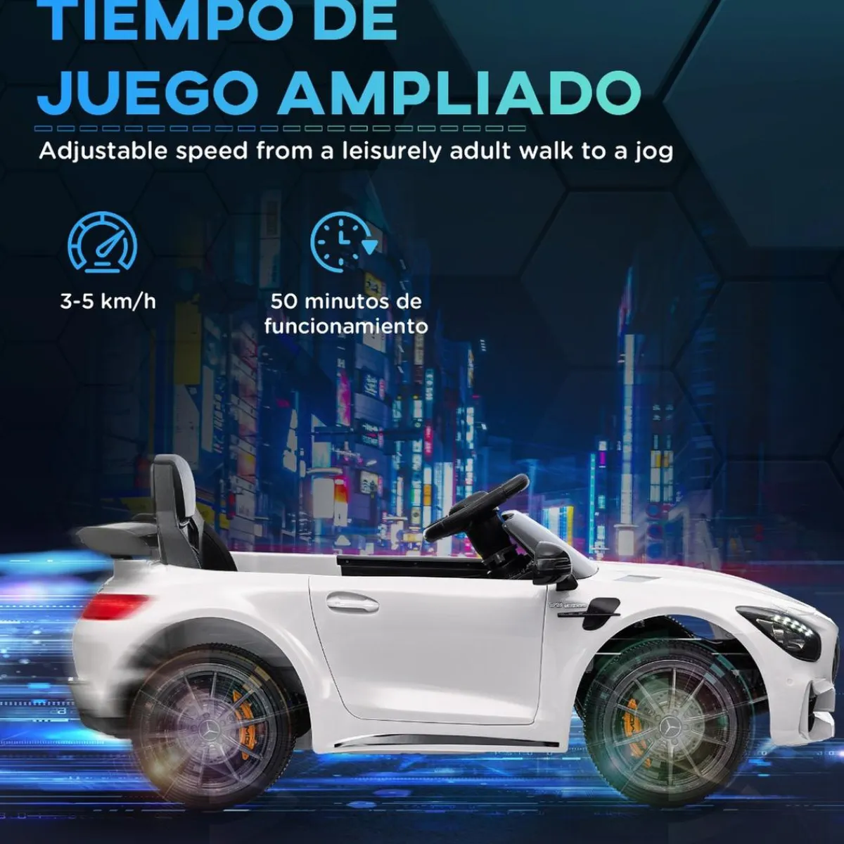 Homcom – Coche eléctrico Mercedes-Benz AMG GTR 12V con mando a distancia Blanco