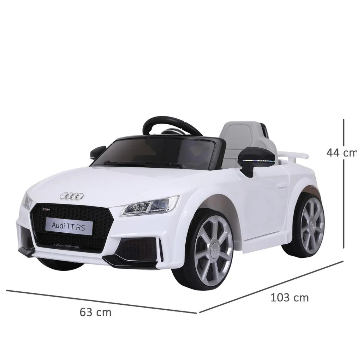 Homcom – Audi TT eléctrico blanco, un vehículo con marcha hacia delante y hacia atrás y con mando a distancia para control parental.