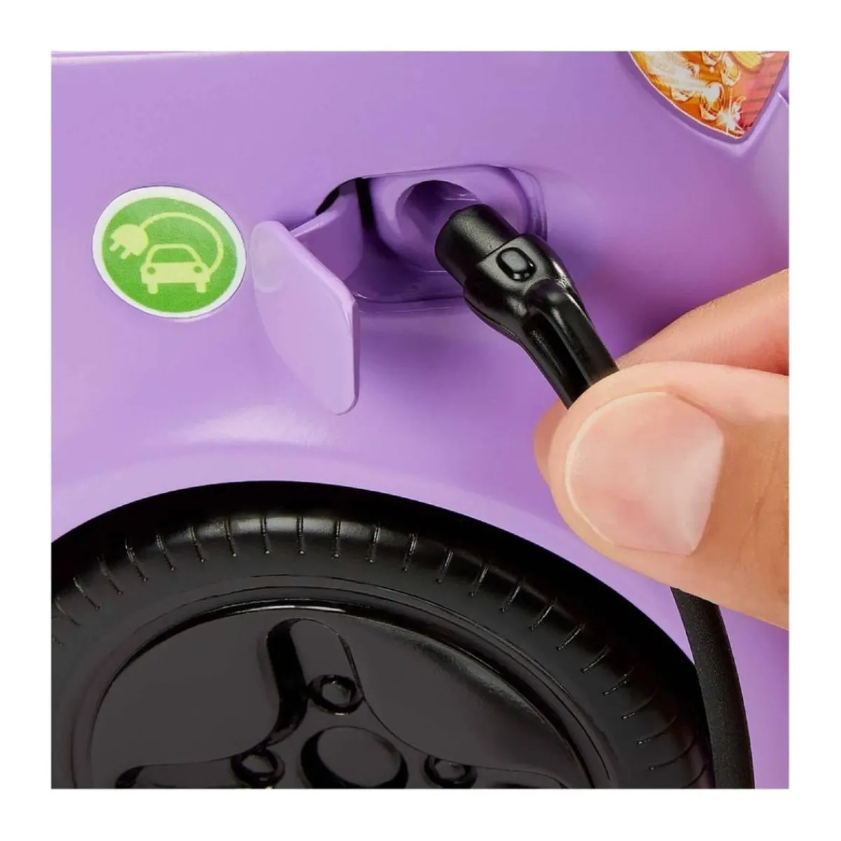 Barbie – Coche eléctrico – Coche, coche eléctrico descapotable de Barbie con estación de carga.