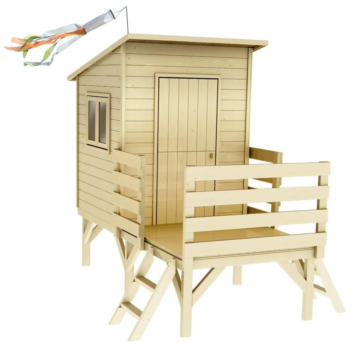 Se trata de una casita con ventana abatible y puerta de doble apertura (superior e inferior). La casita está elevada, presentando una terraza a una altura de 60 cm. Tienen cientos de posibilidades de juego y opciones para crear mundos nuevos al aire libre. Son ideales para una casa con jardín, y para peques de 3 a 12 años.