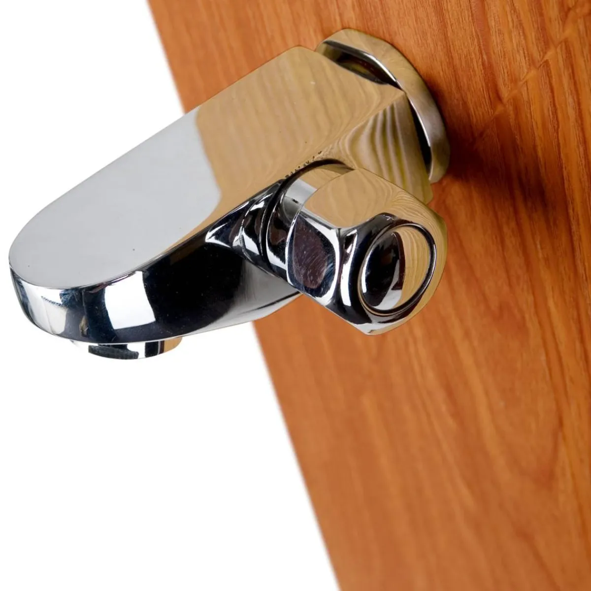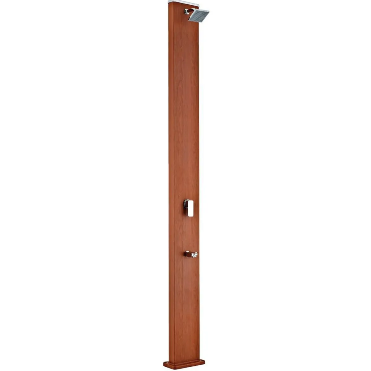 - Ducha solar cuadrada de aluminio con aspecto de madera.