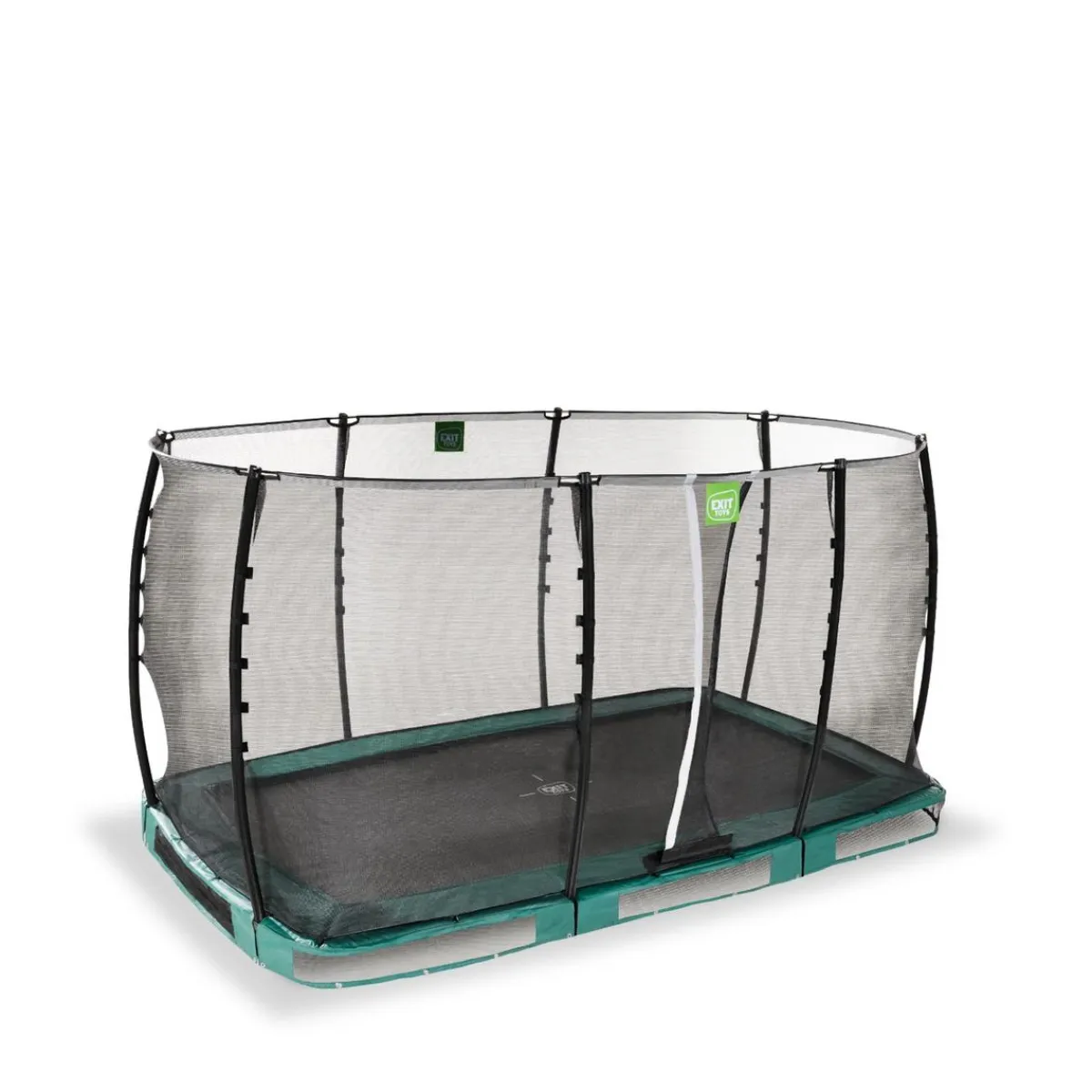 Exit – Cama elástica de suelo Allure Classic 214 x 366 cm verde, un trampolín para ser semienterrado con borde protector acolchado y red de seguridad.