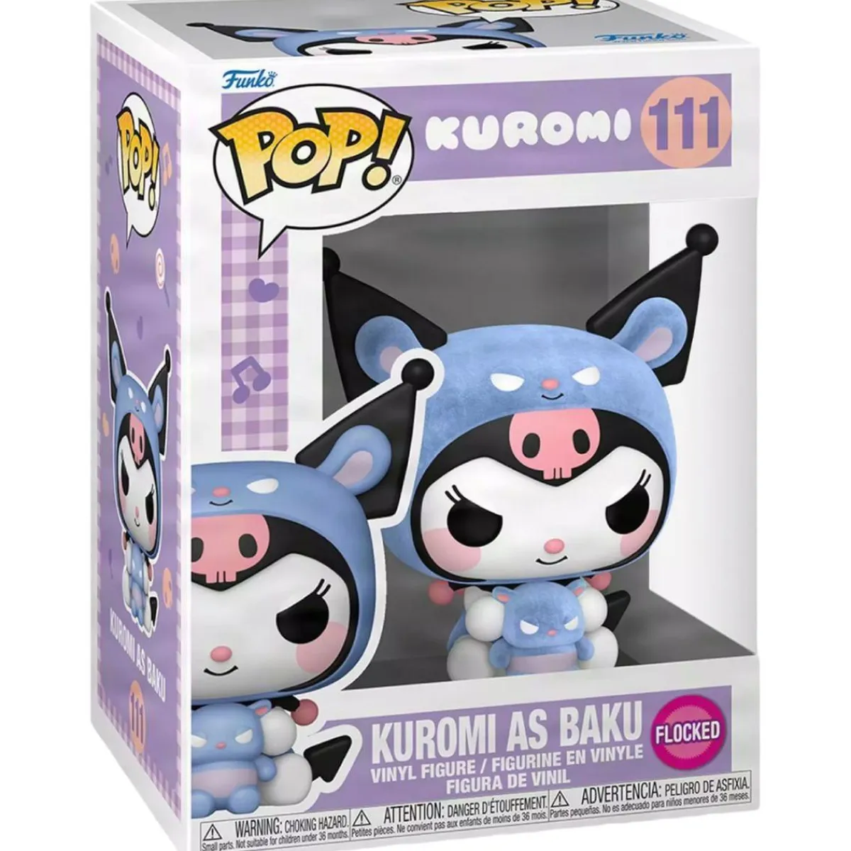 Agrega un toque suave y exclusivo a tu colección con el Funko Pop! Kuromi as Baku (Flocked), edición especial. Esta adorable figura presenta a Kuromi disfrazada como Baku, con un acabado flocked que le da una textura aterciopelada muy especial, perfecta para los fans de Sanrio que buscan algo diferente.