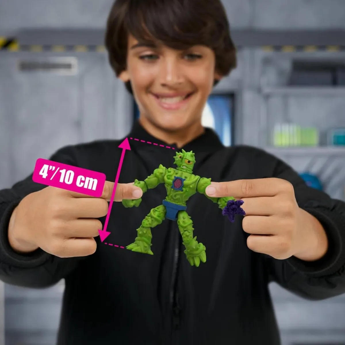 Incluye 13 bolsas de aluminio selladas con piezas sorpresa, una parte extra de cuerpo («bonus»), un manual de instrucciones y un recipiente tipo «laboratorio» para revelar colores y efectos al mezclar con agua. Las figuras, de aproximadamente 10 cm de altura y con alrededor de 10 puntos de articulación, ofrecen posturas dinámicas que fomentan la creatividad y el juego interactivo.