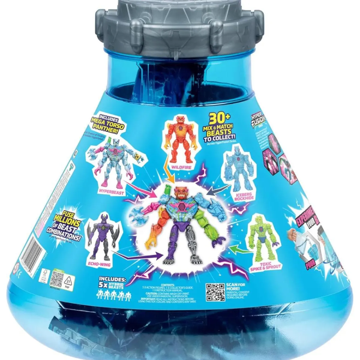 Con más de 30 bestias híbridas diferentes para coleccionar, los niños pueden descubrir variantes raras, ultrarraras y versiones especiales como el Mega Torso Panther, e incluso la edición dorada especial “Golden Hyperbeast”.