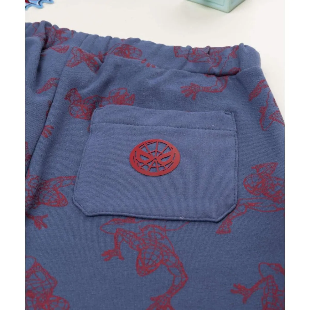Este pantalón para niño en azul presenta un estampado all over de Spiderman en rojo que aporta energía al look. El interior afelpado ofrece calidez suave y la cintura elástica con cordón ajustable asegura un ajuste cómodo que acompaña el movimiento. Incluye bolsillos de corte diagonal prácticos para el día a día.