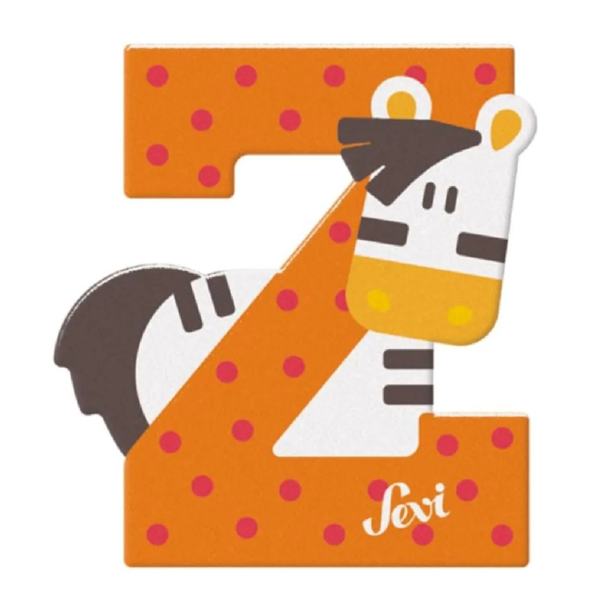La Letra Z de madera de Sevi está adornada con una simpática ilustración de una cebra, añadiendo un toque divertido y educativo a cualquier espacio.