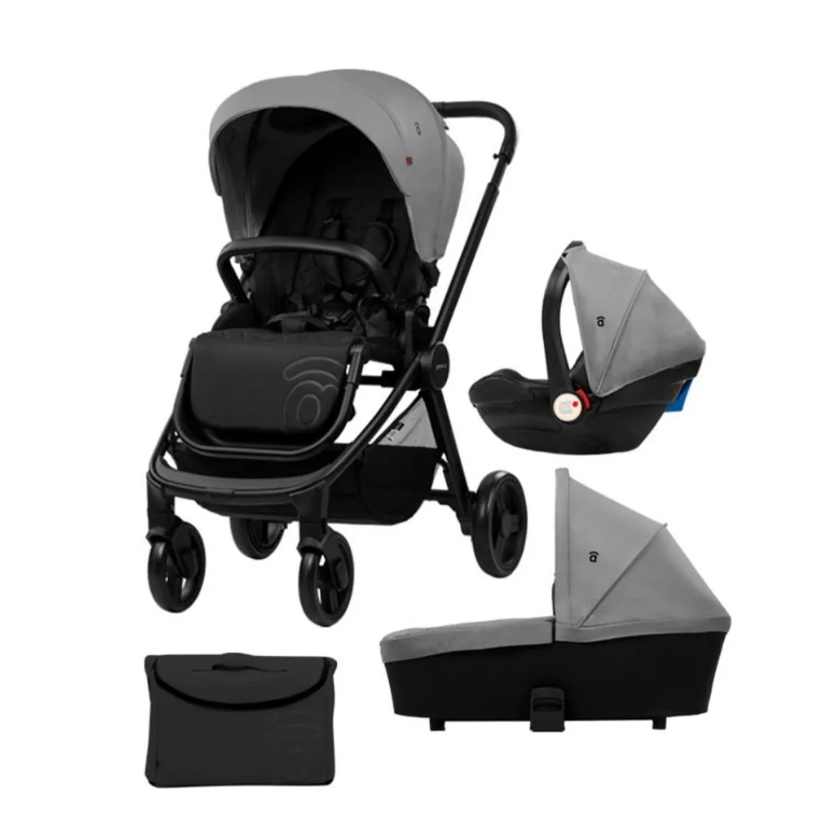 - Incluye: chasis de aluminio, unidad de asiento, capazo, silla de auto y bolsa cambiador.