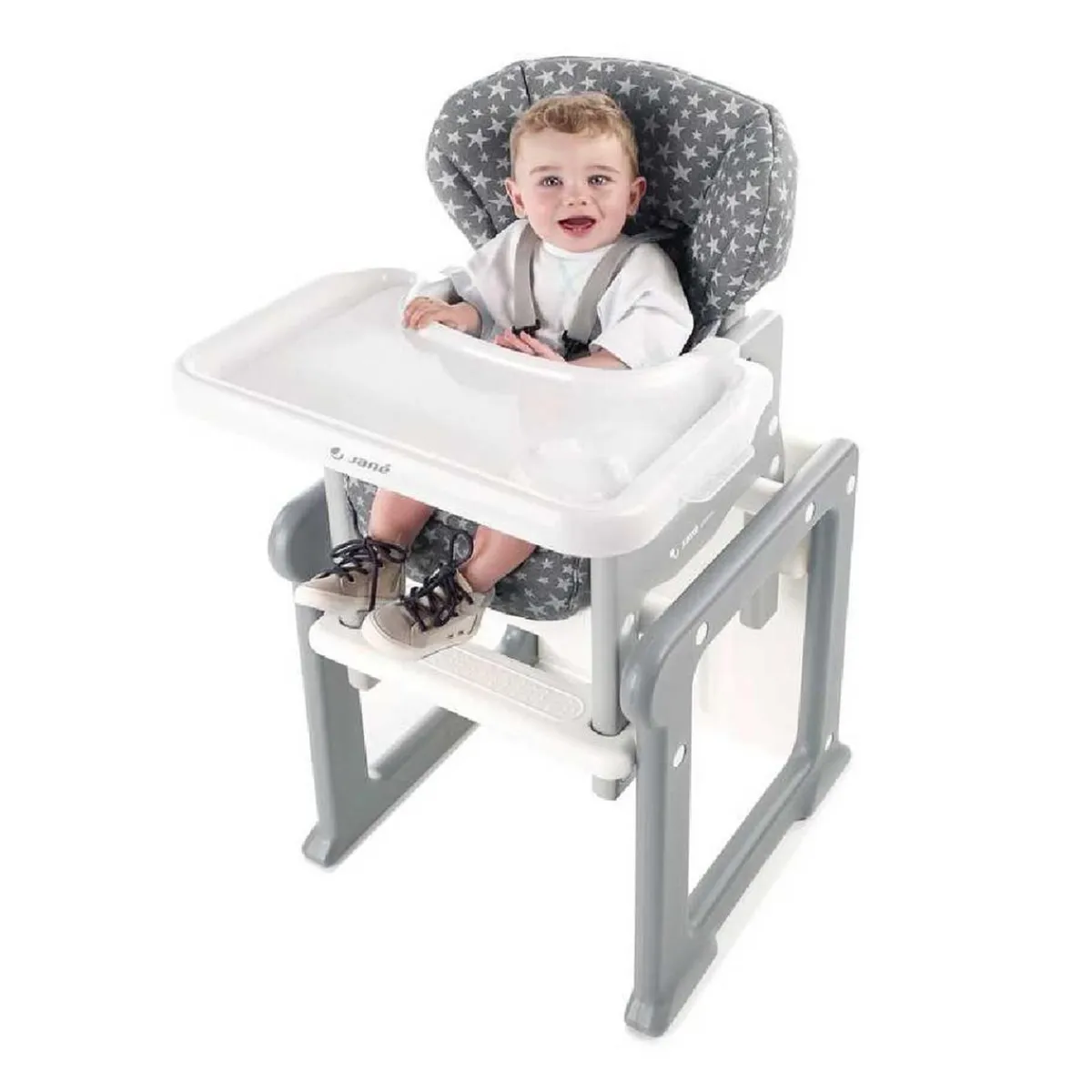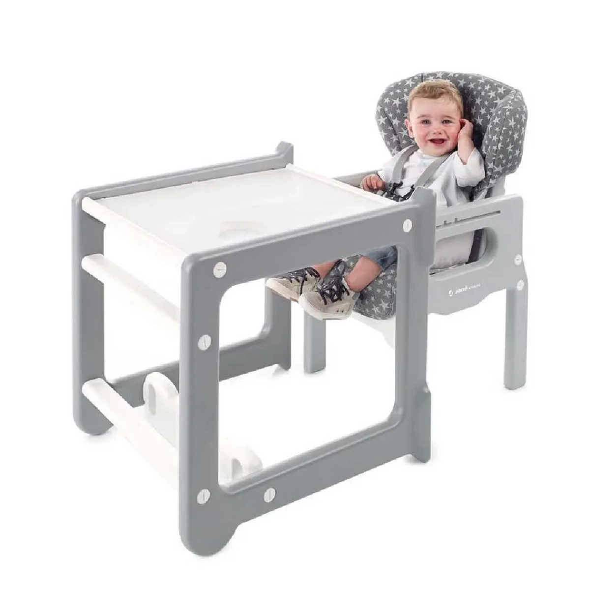 Este innovador producto combina las funcionalidades de una trona, una silla y una mesa, adaptándose a las necesidades cambiantes de tu hijo.