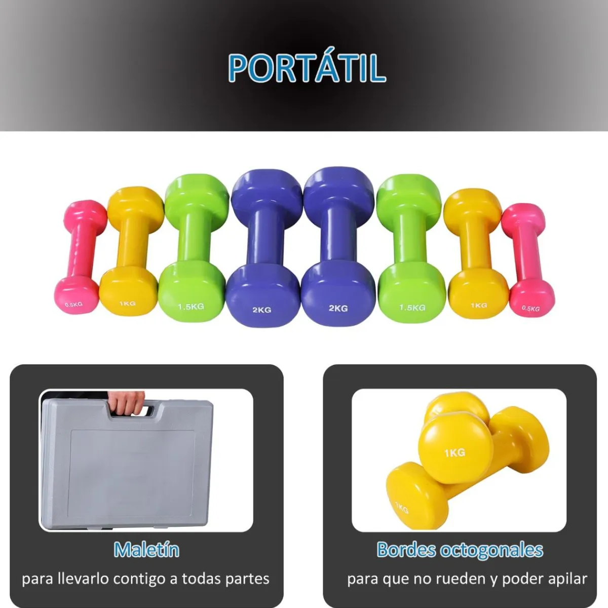 Homcom – Juego de 8 Mancuernas, 4 pares de mancuernas aptas para levantamiento de pesas, cardio, yoga, sentadillas, etc. Ideal para fortalecer los huesos, ganar músculo, etc. Para usar en casa o en el gimnasio.