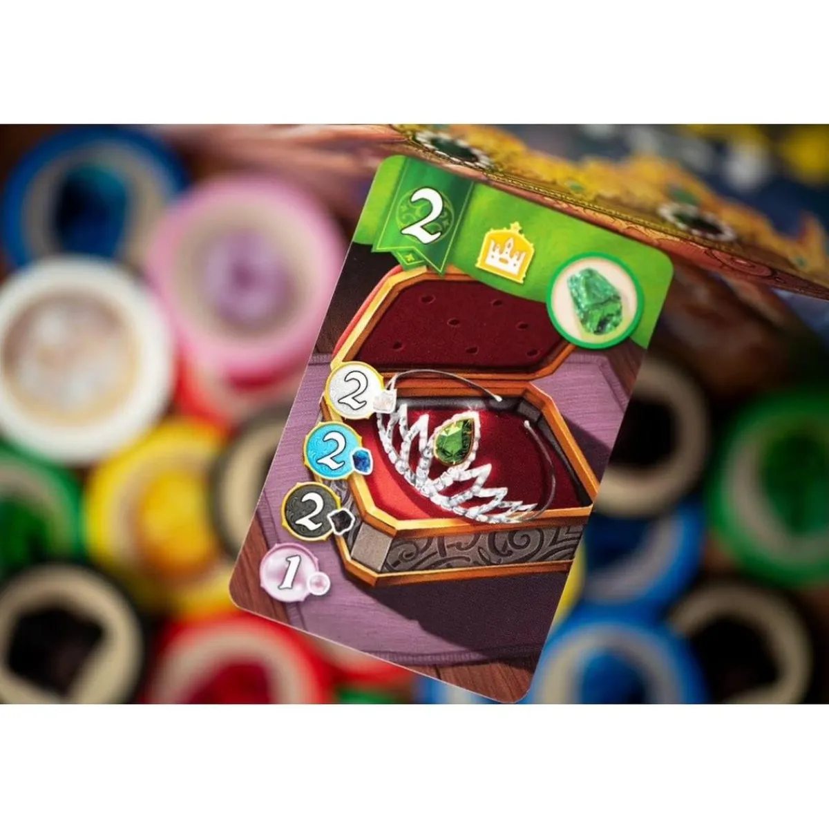 Splendor Duel es una versión única y nueva del superventas original, Splendor, que trae consigo una serie de emocionantes mejoras y modificaciones. En este juego, las condiciones de victoria varían, lo que proporciona una experiencia de juego única cada vez que juegas. Además, presenta nuevos elementos, como las escasas perlas, que añaden un giro interesante a la estrategia del juego. Nunca te cansarás de luchar por el poder, los favores y las raras perlas.