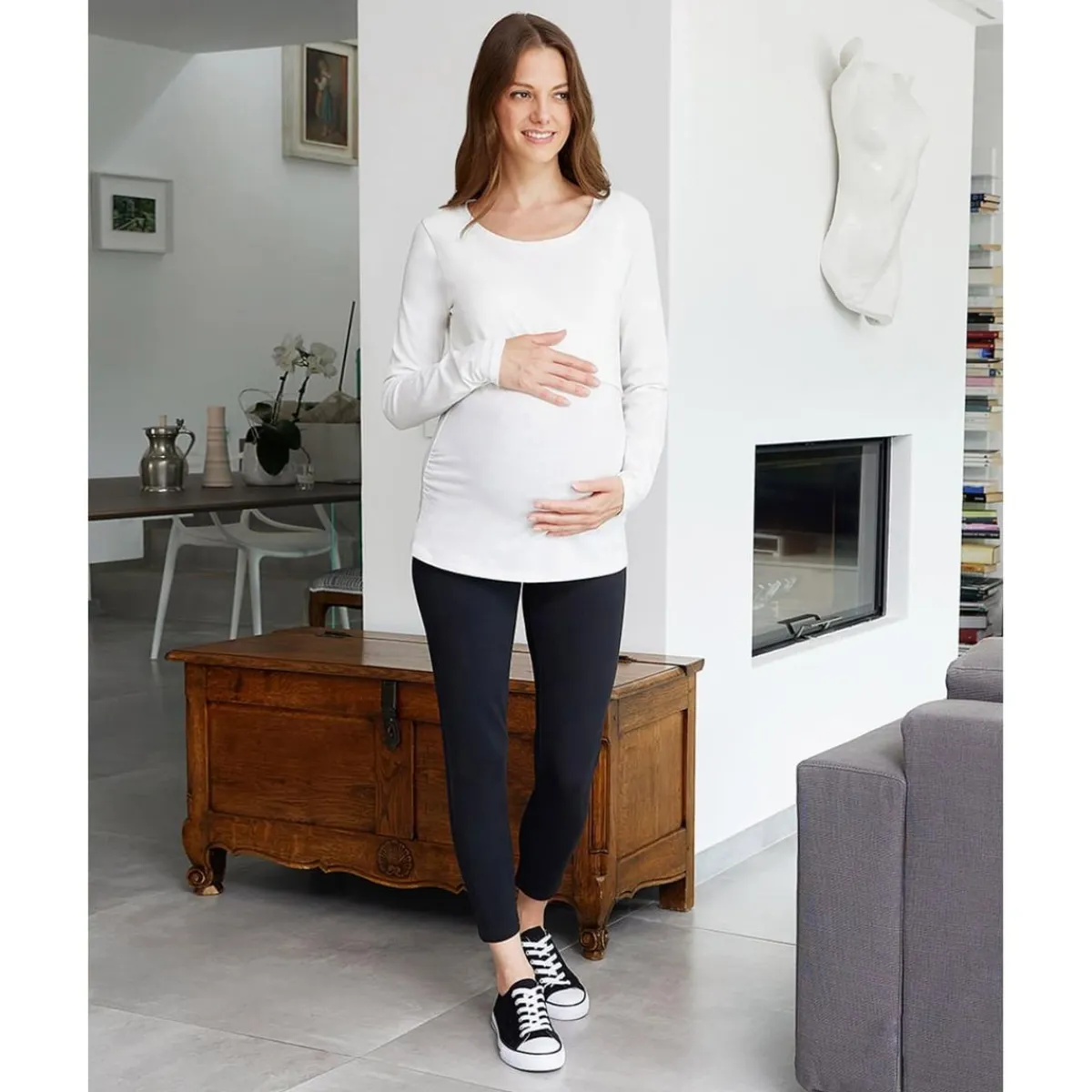 Estos leggings premamá en color negro están confeccionados en suave tejido french terry, un material que se sitúa entre la felpa y los tejidos más finos, aportando un equilibrio ideal entre ligereza y calidez. Pensados para adaptarse a todas las fases de la gestación, ofrecen una sensación agradable en contacto con la piel y acompañan los movimientos cotidianos con total libertad. Su diseño con cintura alta y banda elástica acanalada sujeta delicadamente la barriga sin oprimir, garantizando comodidad durante todo el día. Versátiles y fáciles de combinar, se convierten en un básico imprescindible tanto para looks informales como para momentos de relax en casa.