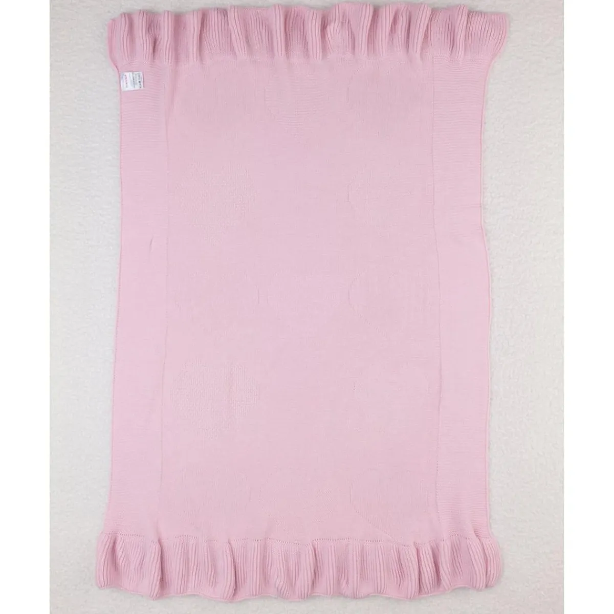 Arropa a tu bebé con esta manta rosa suave para recién nacida, confeccionada en un delicado tejido de punto. Presenta un diseño encantador con volantes en los bordes y un bordado tono sobre tono de estrellas grandes, aportando calidez y un estilo dulce.