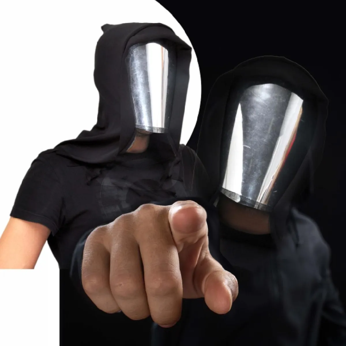 La combinación de la capucha negra y el espejo crea una estética moderna, ideal para aquellos que buscan destacar y ser recordados.