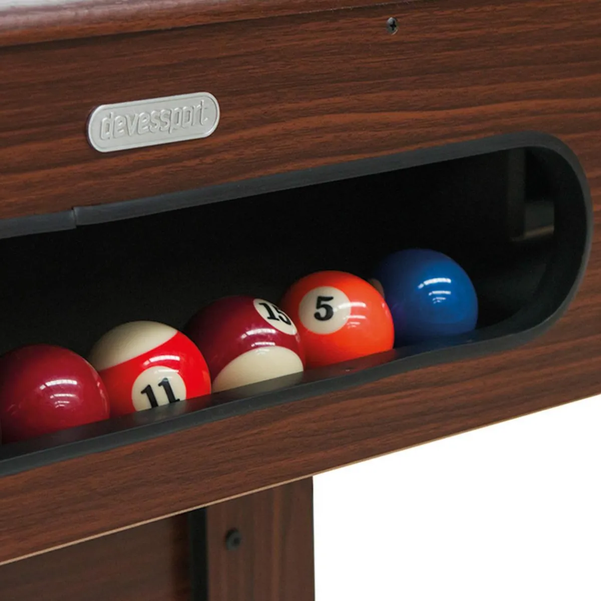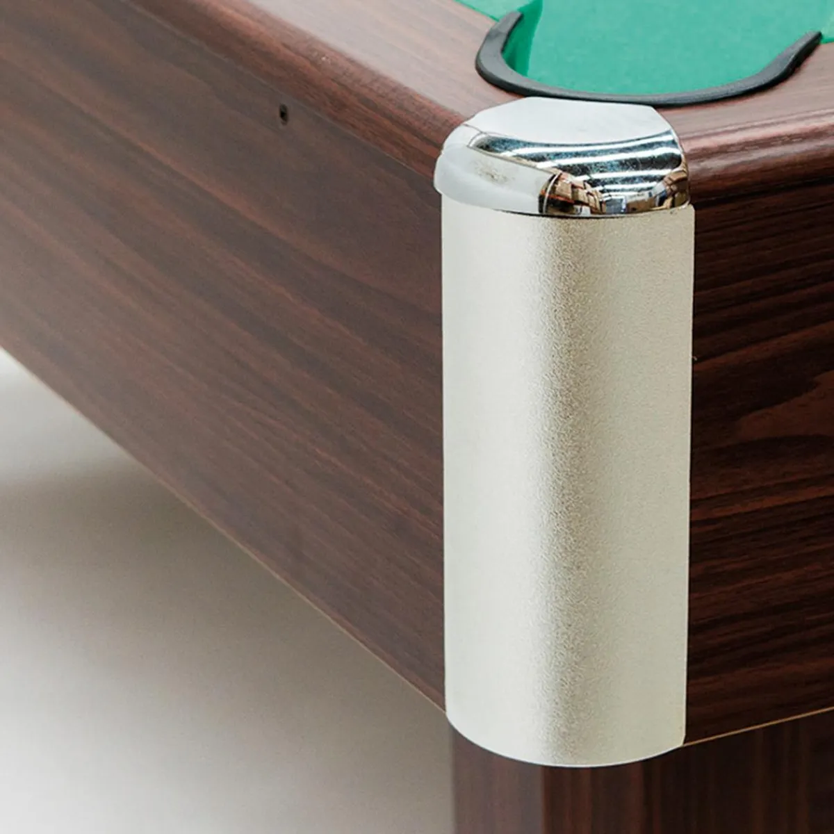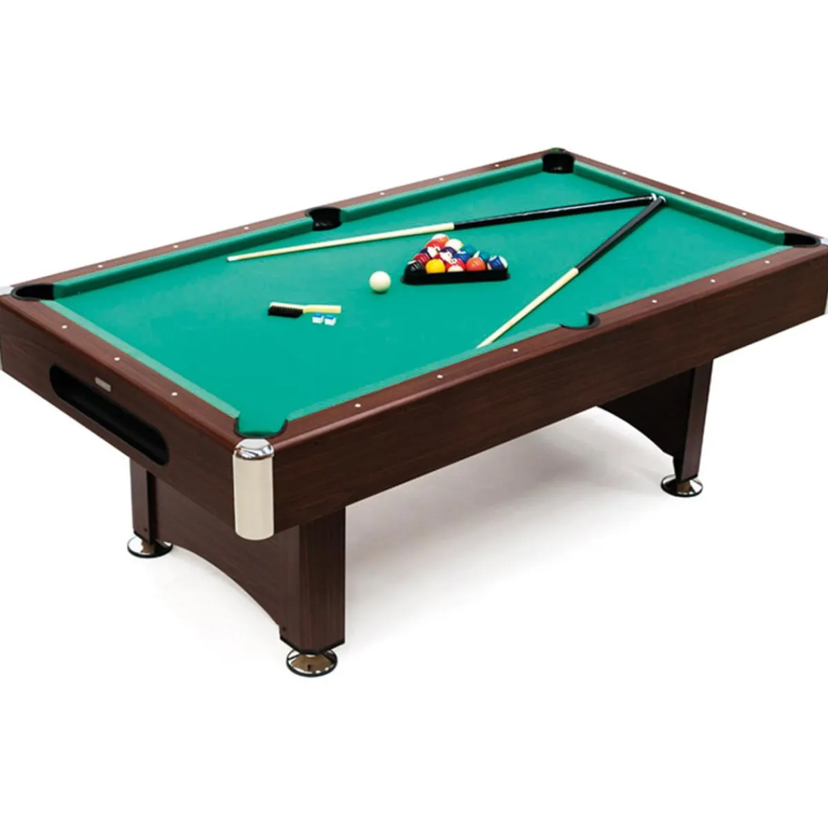 La mesa viene montada a falta de atornillar las patas. Incorpora una barra superior ancha y defensas de goma para conseguir un auténtico rebote de la bola. La mesa de billar está forrada con tejido de gran duración. Incorpora niveladores de patas.