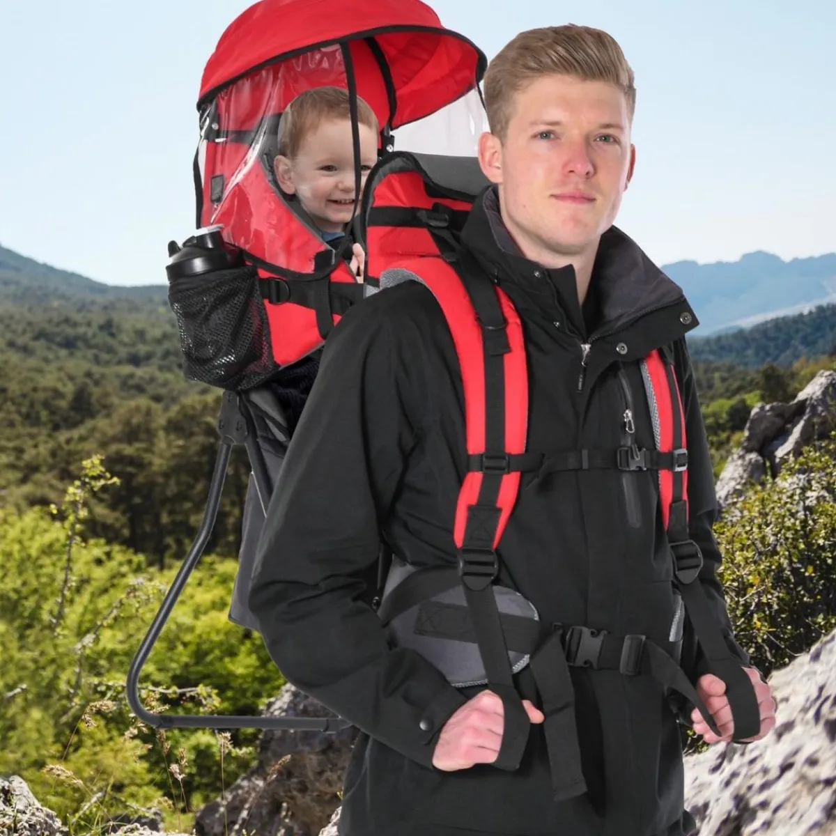 Homcom – Mochila portabebés plegable, una mochila para senderismo de alta calidad con capota y estructura de aluminio robusta y ligera.