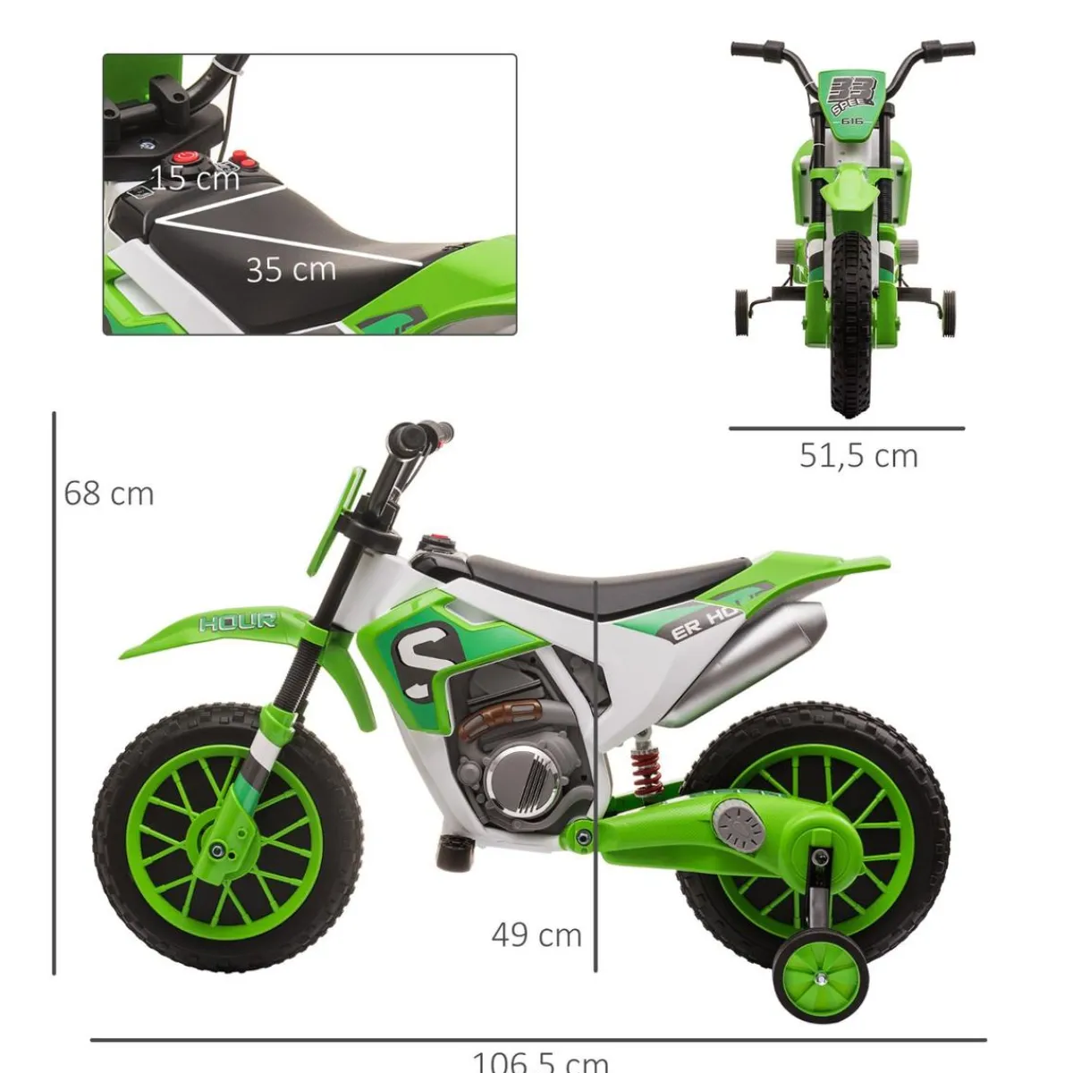 Homcom – Moto eléctrica 12V verde, los niños se lo pasarán en grande mientras promueven habilidades como la coordinación, la orientación y su autoconfianza.