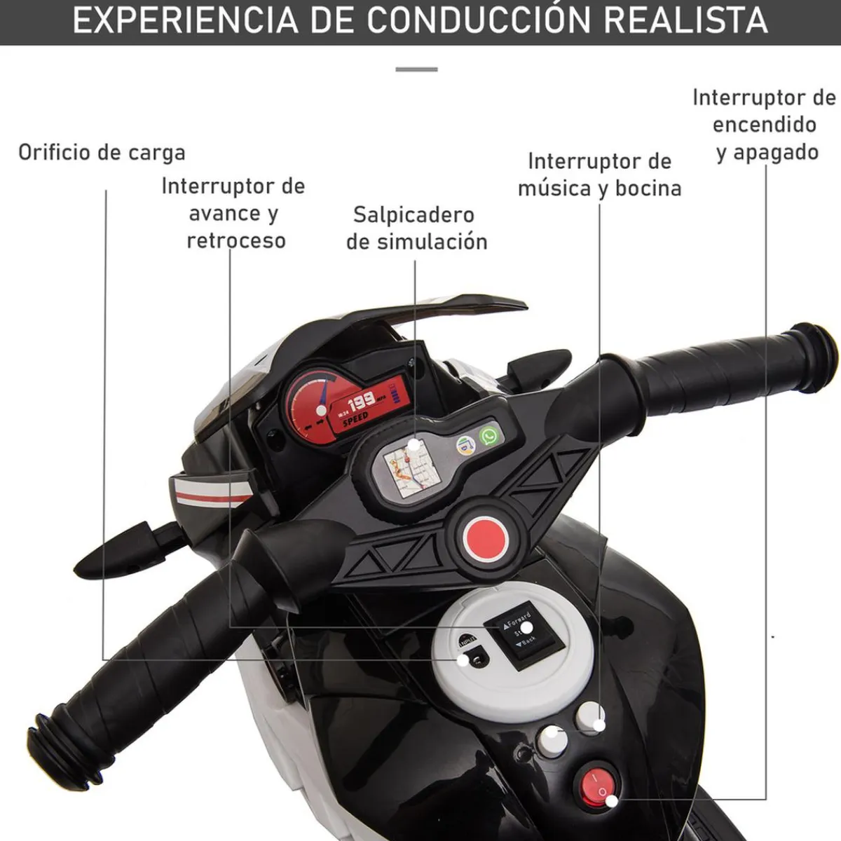 Esta moto infantil arranca a baja velocidad, permitiendo que los pequeños puedan responder oportunamente a situaciones inesperadas. Con una velocidad máxima limitada de 3 km por hora, este vehículo para niños permite que tu hijo se divierta y esté seguro. Además, se controla fácilmente mediante su pedal acelerador.