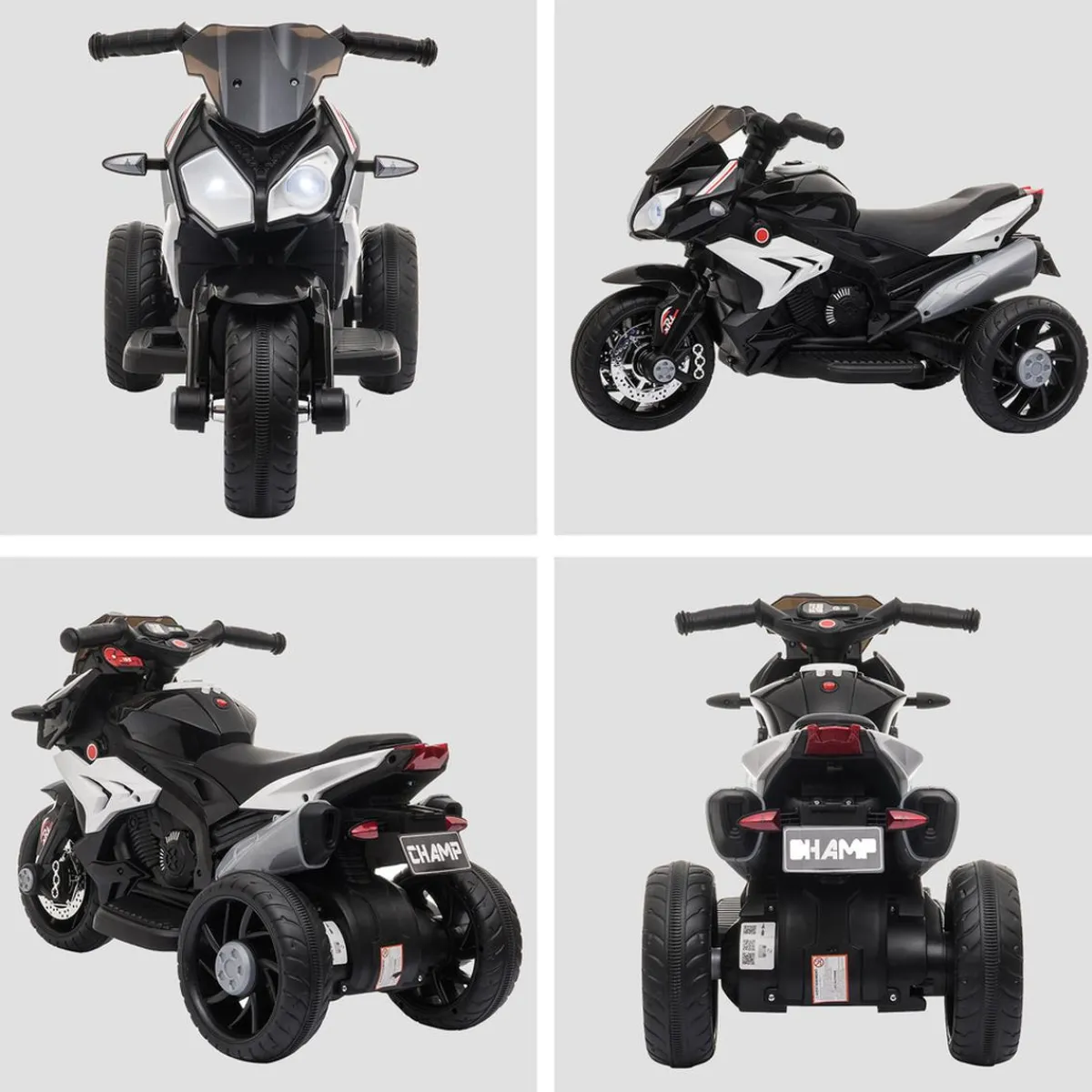 Homcom – Moto eléctrica batería 3 ruedas Trimoto Negro y Blanco. ¡Qué empiece la aventura! Esta motocicleta eléctrica de Homcom con 3 ruedas será la compañera de aventuras perfecta para cualquier niño. Con una autonomía de hasta 45 minutos después de una carga completa, podrá ir por sus lugares favoritos como un verdadero conductor y a una velocidad limitada de seguridad de 3 km/h. Con faros delanteros con luz, esta moto ofrece una experiencia de conducción de lo más realista, para que los niños se lo pasen en grande.