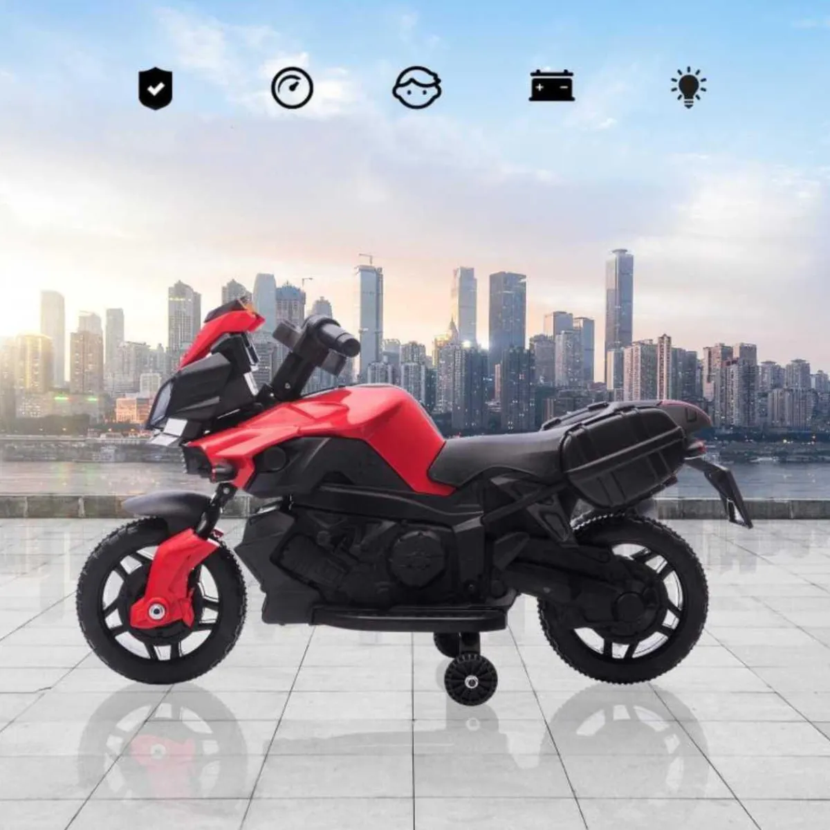 Con faros delanteros con luz y bocina, esta moto ofrece una experiencia de conducción de lo