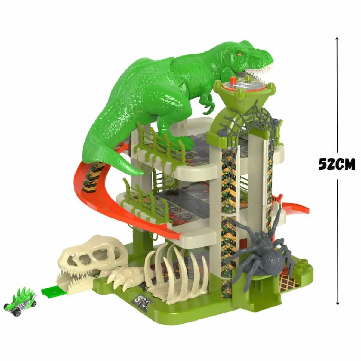 ¿Te atreves a enfrentarte al terrible T-rex? El garaje de Motor & Co está custodiado por terribles bestias feroces.