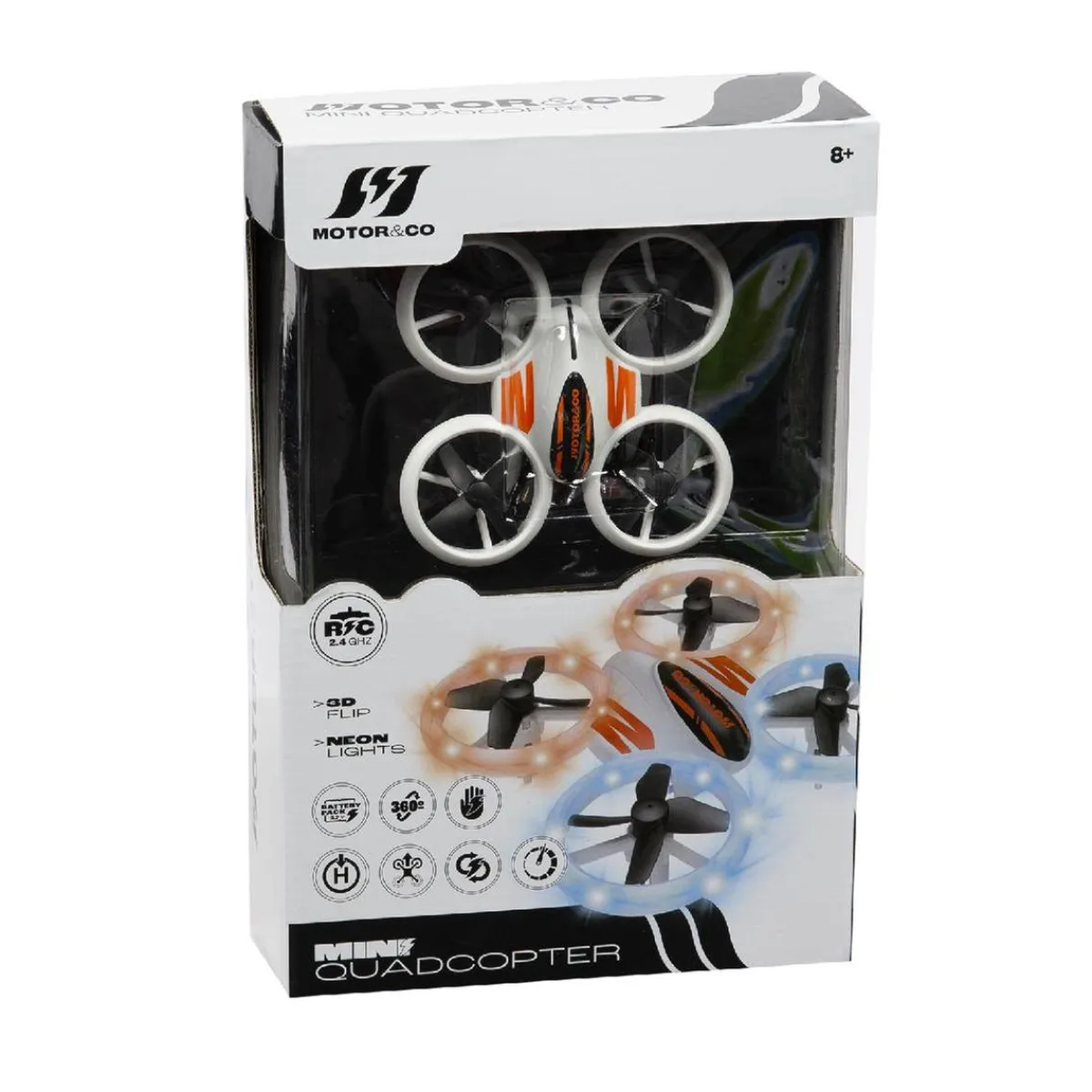Motor & Co – Mini dron con luz neón, un mini dron con estabilizador y luces LED.