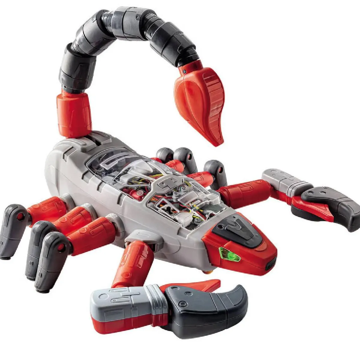 El robot camina como un escorpión real con sus 6 patas controladas por dos motores. Las pinzas motorizadas y la cola se mueven para hacer que el robot escorpión sea súper realista.