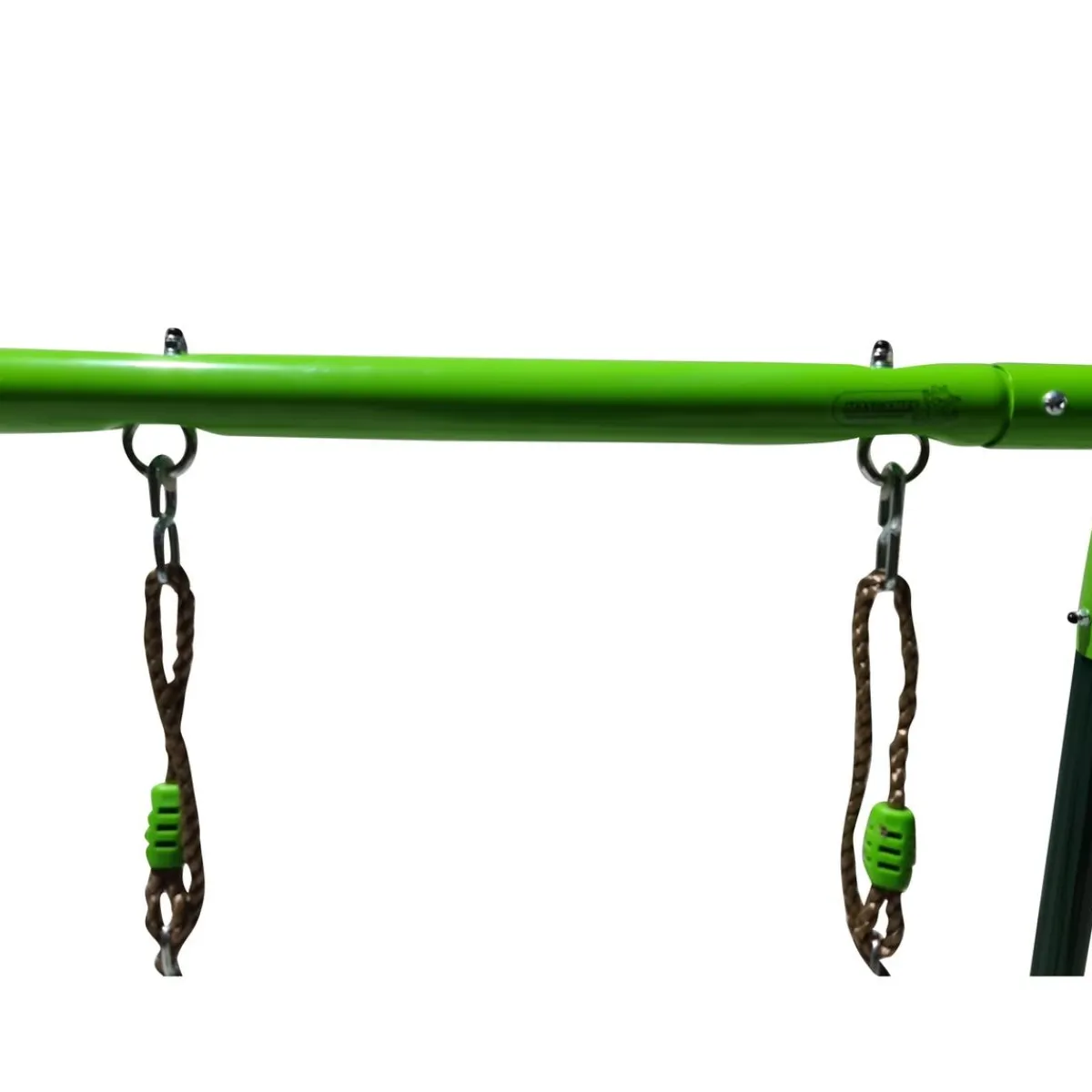 Columpio metálico doble Olea + asiento bebé. Columpio metálico de dos plazas Olea. Un columpio con estructura de metal galvanizado para exterior y pintado con tonos verdes para adaptarse mejor al jardín.