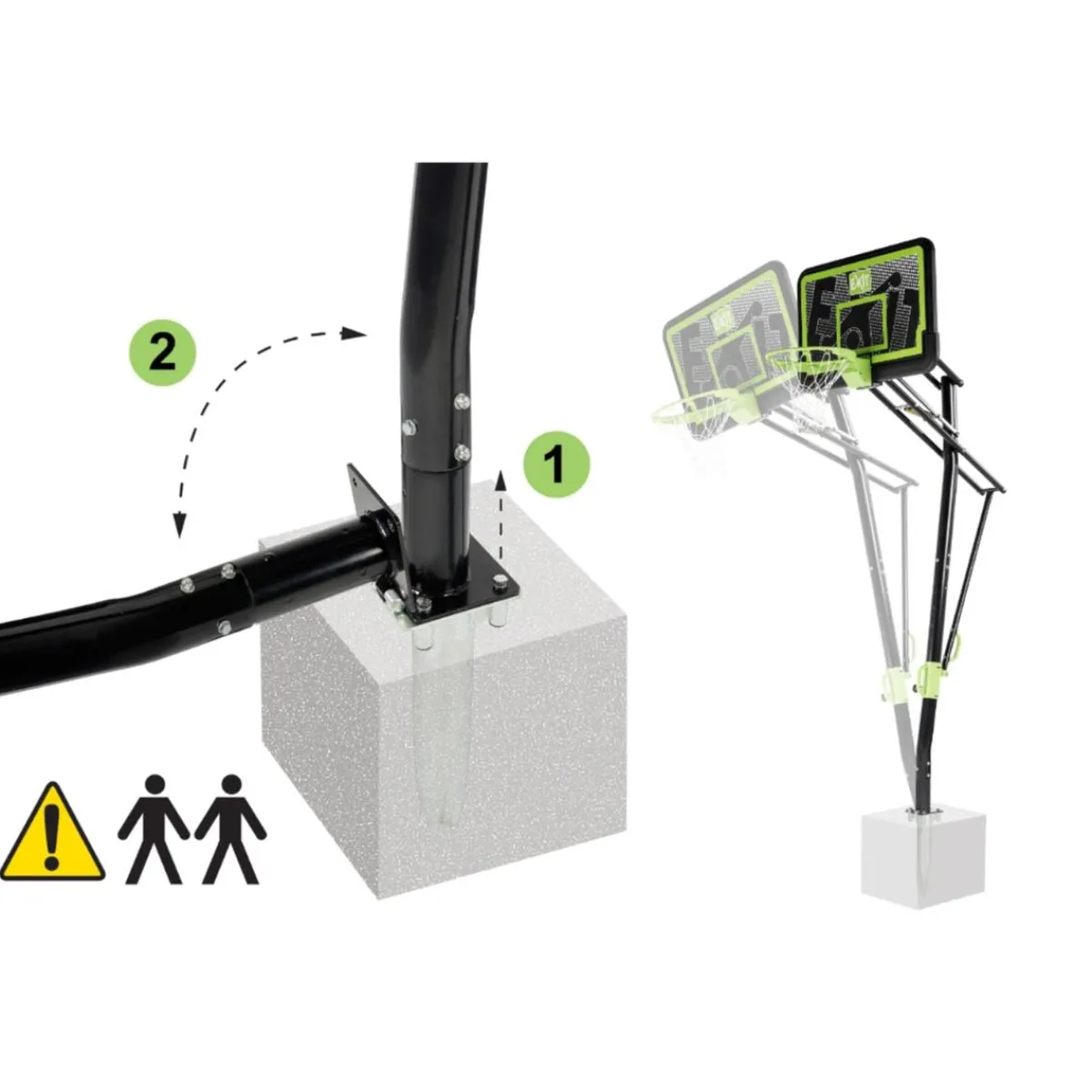 Se ancla al suelo de forma fija con un bloque de cemento, por lo que no se puede mover el tablero de baloncesto después del montaje.