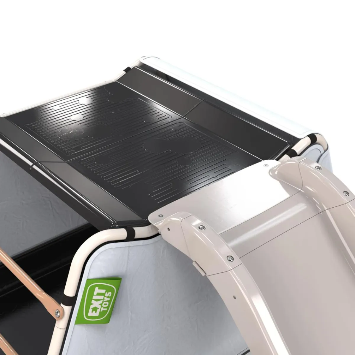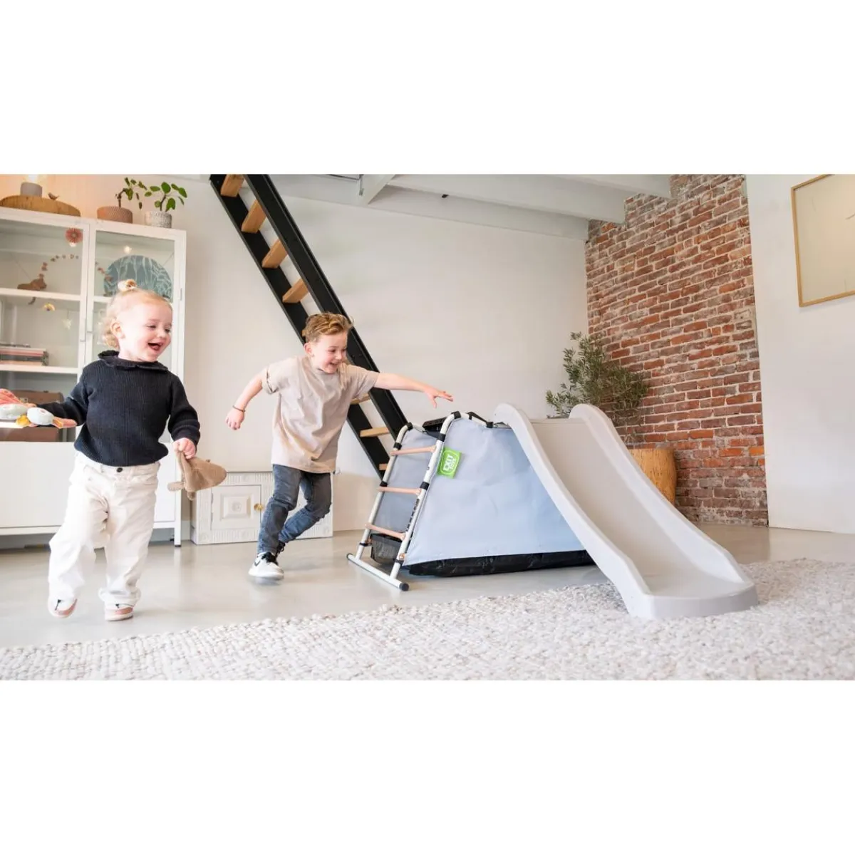 Debido a su tamaño compacto, este multiplay se puede utilizar tanto en exteriores como en interiores. El diseño contemporáneo con tonos de colores suaves hace que este multiplay luzca elegante dentro de tu hogar o en el jardín. Gracias al marco de acero, este multiplay es extra estable. La tienda de juegos tiene una capa de espuma en el techo, que ofrece protección contra golpes. Los niños a partir de 2 años pueden subir los peldaños y deslizarse con seguridad. La unidad de juego se puede montar fácilmente y, debido a su peso ligero, se puede mover o guardar con facilidad. La seguridad de este área de multijuego ha sido aprobada por el reconocido y reconocido instituto de pruebas TÜV.