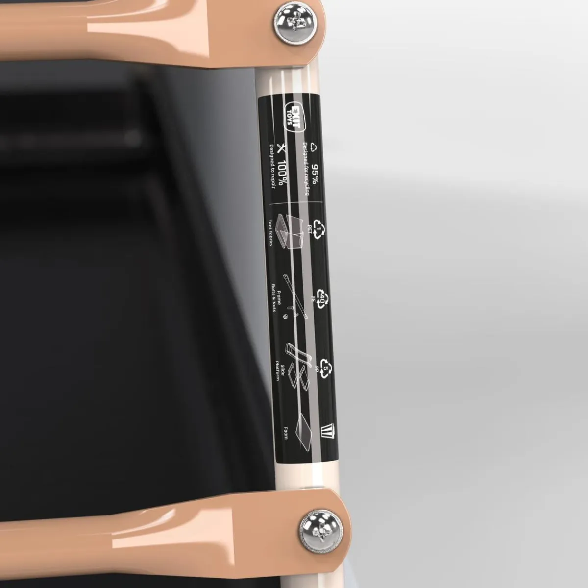 El multiplay es 100% reparable, lo que significa que cada parte de él se puede reemplazar. Además, la unidad de juego es casi completamente reciclable. Esto se debe a que solo se han utilizado materiales mono, es decir, materiales que consisten en un solo tipo de materia prima. Esto asegura que sean más fáciles de reciclar, ya que no es necesario separar los materiales. El marco de acero está galvanizado y recubierto de polvo. Gracias a esto, el óxido no tiene oportunidad y el multijuego puede resistir todas las condiciones climáticas.