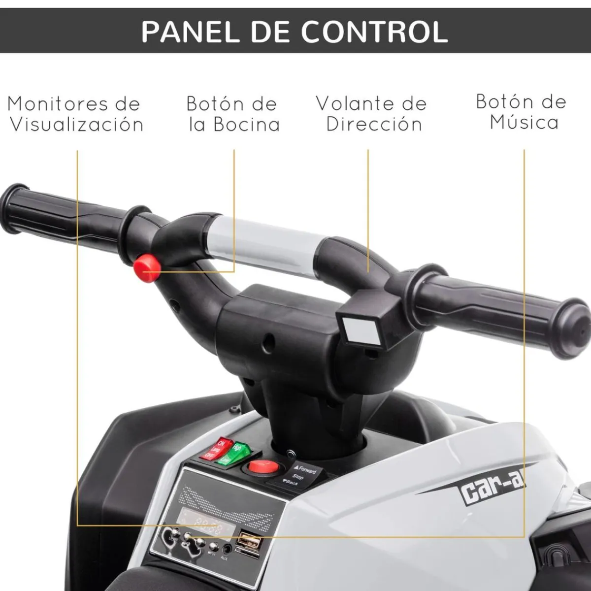 Homcom – Quad eléctrico 12V blanco, un Quad con características realistas como luces delanteras LED y bocina para alimentar la imaginación y el espíritu aventurero de los niños.