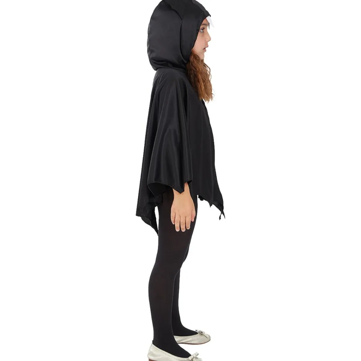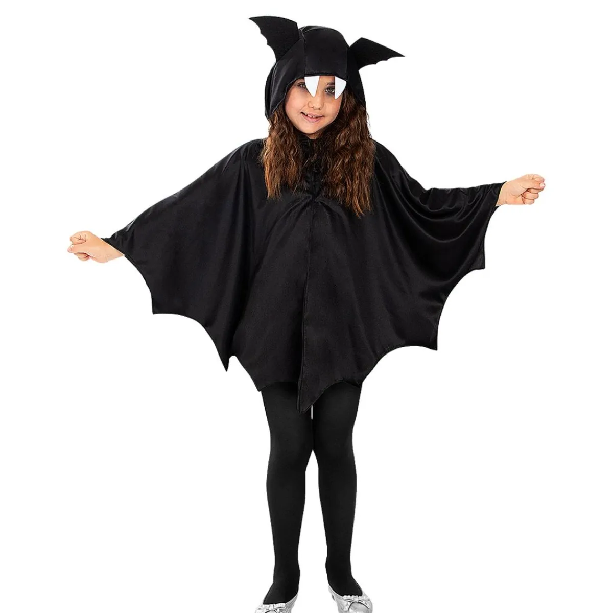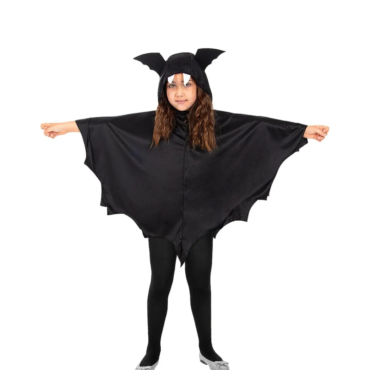 Esta capa de murciélago para niños incluye capa negra con capucha, ofreciendo un look sencillo y terrorífico. Ideal para Halloween o juegos de disfraces.