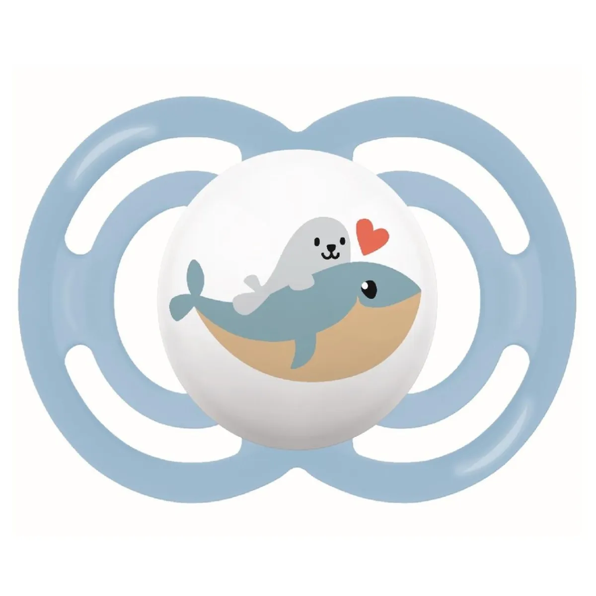Diseñado para reducir el riesgo de dientes desalineados y de malformación de la boca gracias a su tetina 60% más delgada y 4 veces más flexible que un chupete común permitiendo un cierre más natural de la boca dejando a los dientes el espacio necesario para crecer con normalidad.